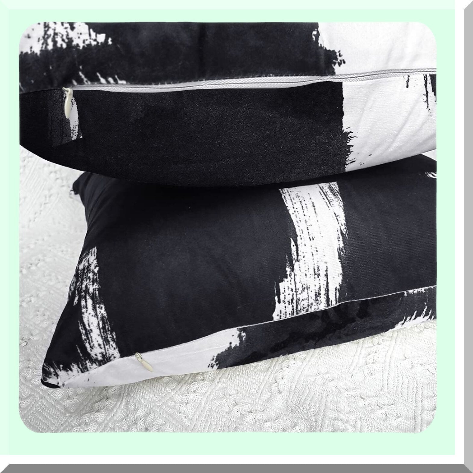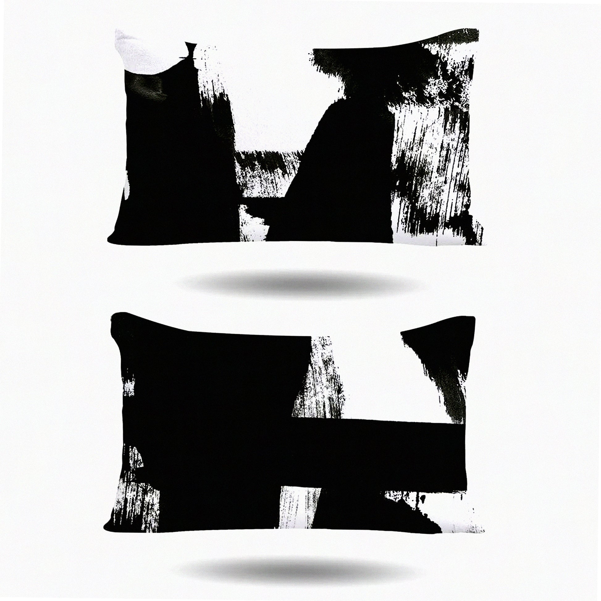 Abstract Chic Pillowcase Set - 2 Pack Decorative Cushion Covers for Sofa Couch Bed, Double-Sided Print, Black White Design, 12x20 Inches