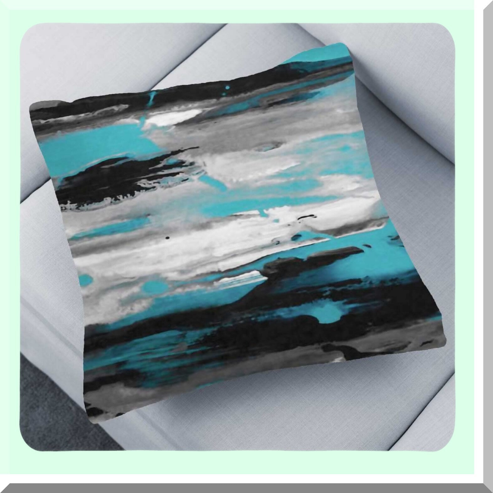 Turquoise Teal Decorative Throw Pillow Covers - Personalized Couch Sofa Pillow Set - Blue Gray Black White Bedroom Living Room 18X18 Inch Set