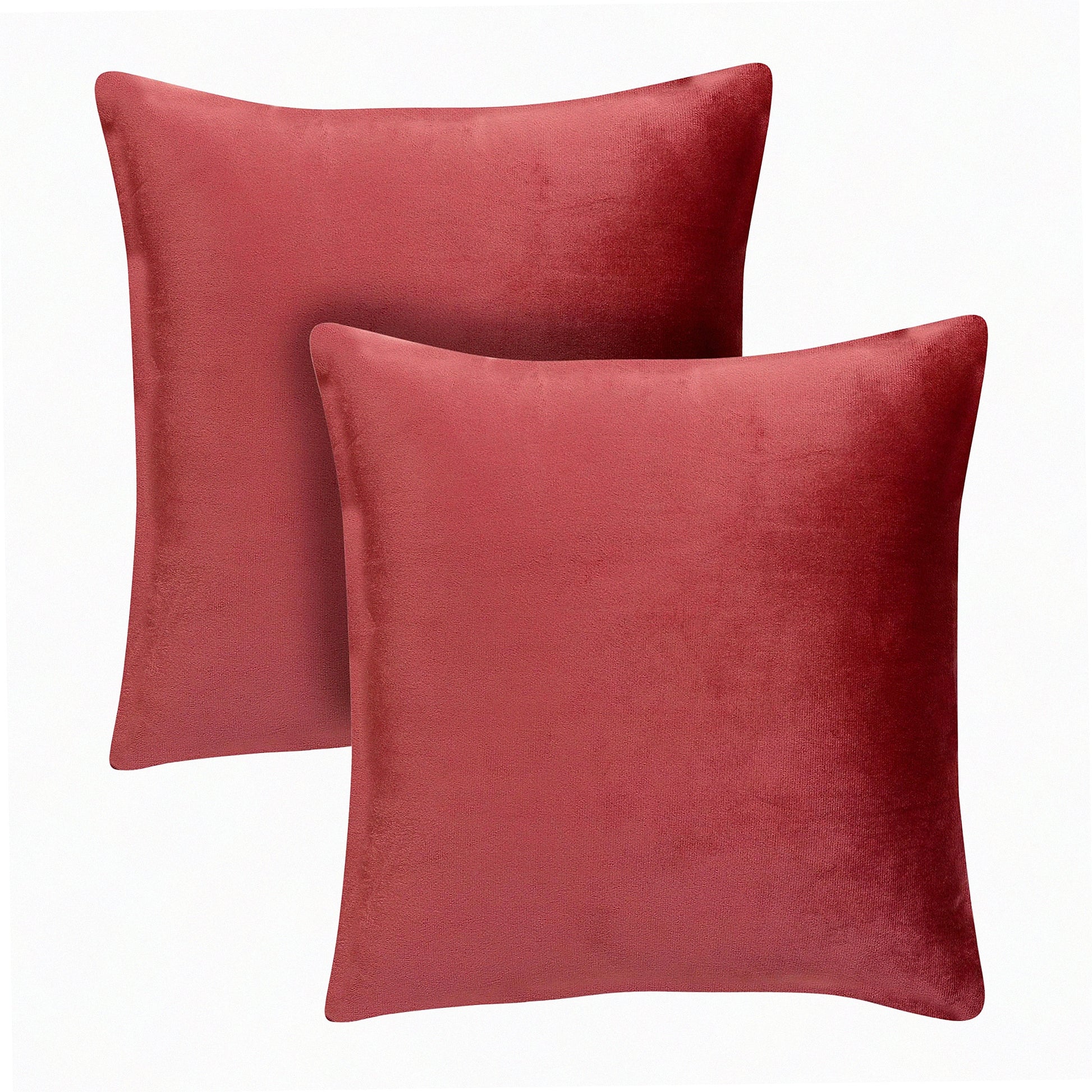Velvet Bliss Decorative Pillow Covers - Set of 2 Soft Square Cushion Cases in Blush Pink - 20x20 inches - Solid Color Home Decor Accent