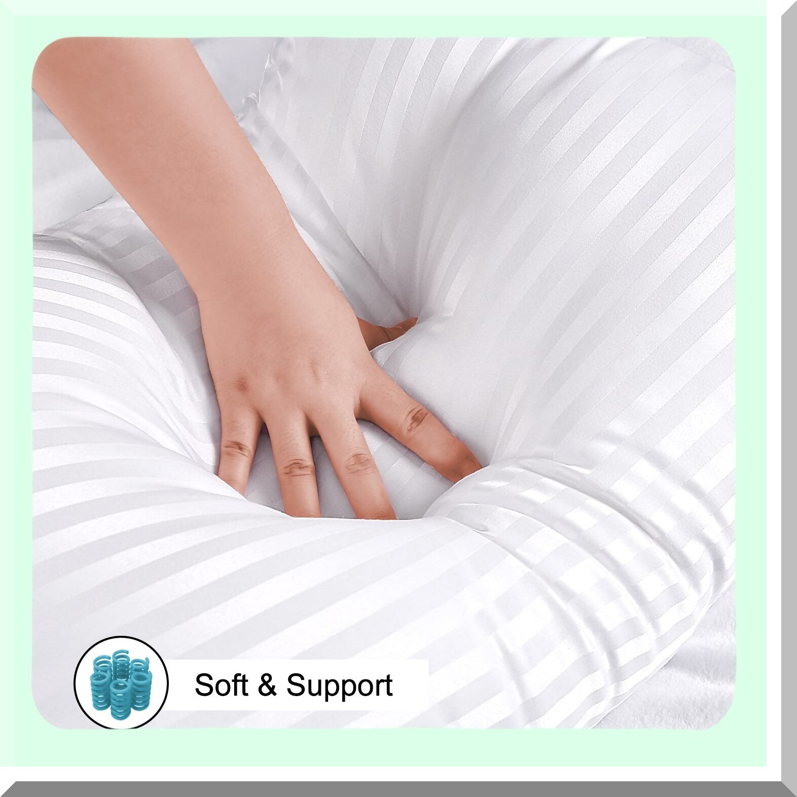 The practical benefits of the bed pillow include a breathable cotton cover and down alternative microfiber filling, promoting airflow and ensuring a comfortable night's sleep. This design prioritizes user comfort and impact by providing a cool and breathable surface for sleeping, ultimately enhancing the overall sleeping experience.