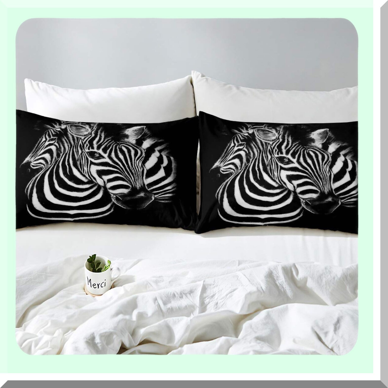 Wild Horse Gallop 3D Queen Size Duvet Set - Africa Animal Print Bedding - Personalized Microfiber Cover - Blue White Zipper - 3 Piece Comforter Set