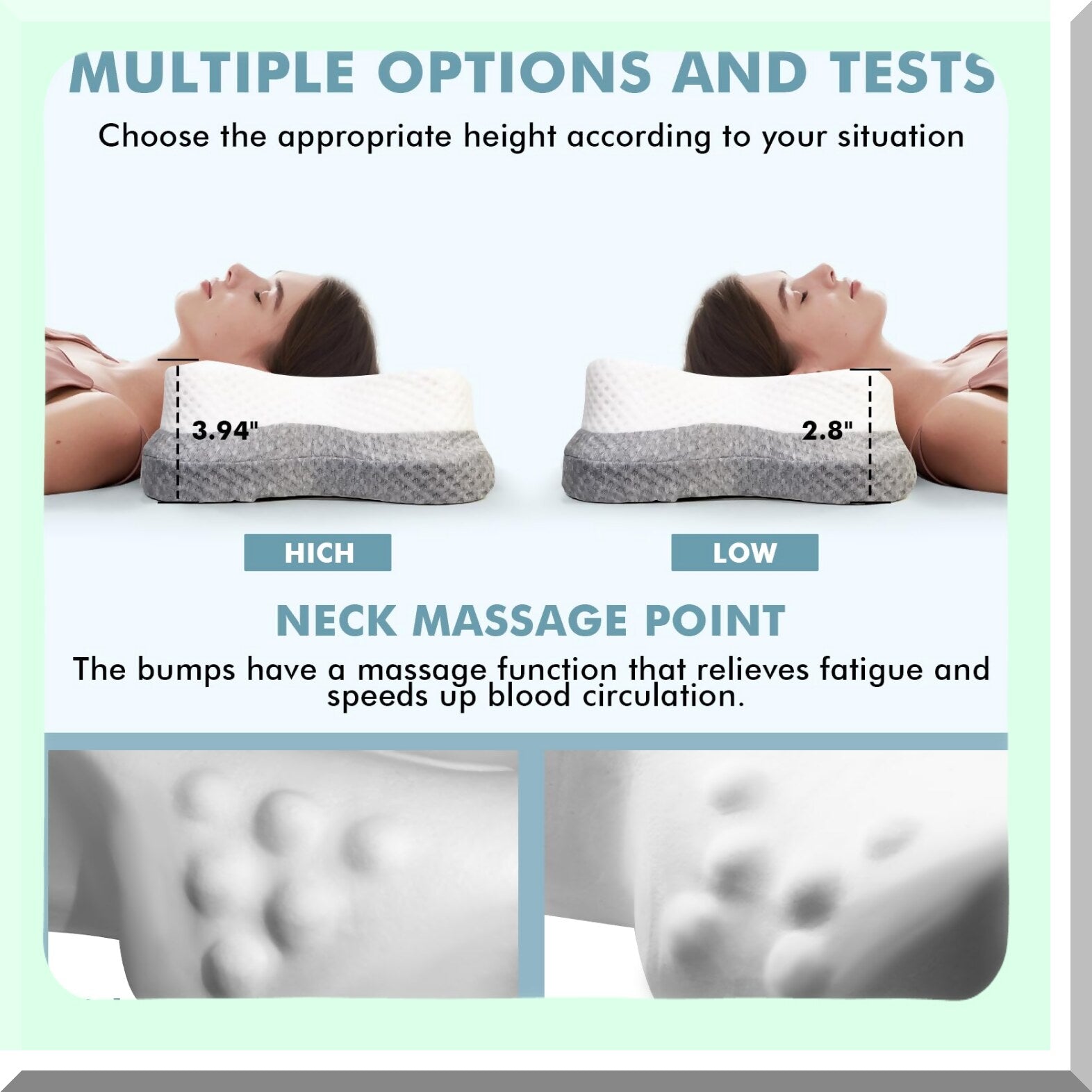 Our memory foam pillow is designed to provide optimal support for your head, neck, shoulders, back, and arms, helping to alleviate neck cramps and back pain. It is especially beneficial for those struggling with insomnia, as it promotes better sleep quality. The ergonomic design ensures maximum comfort and alignment while sleeping, leading to improved overall well-being and a more restful night's sleep.