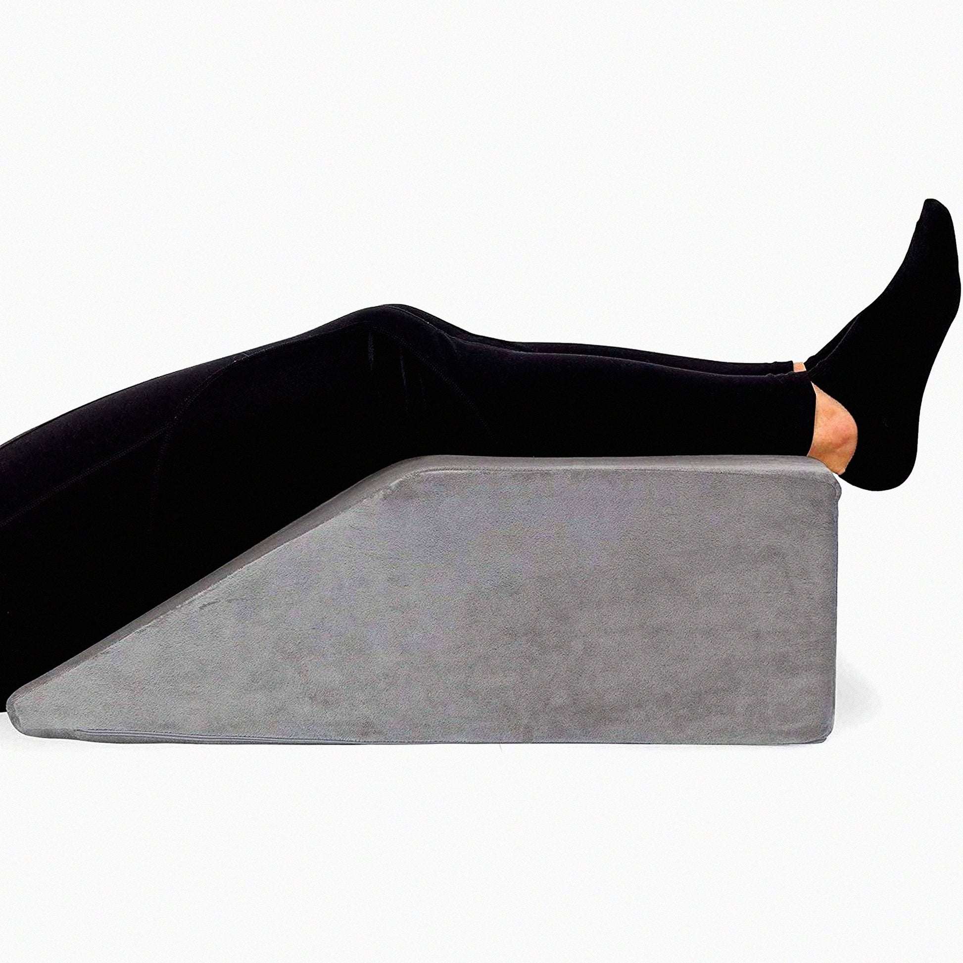 The specially designed leg wedge pillow provides comfortable support for legs while sleeping, relieving swelling, leg cramps, and edema. It helps attain spine and coccyx alignment, improves circulation, corrects posture, and reduces discomfort from swollen feet and ankles. The memory foam layer contours to the shape of the legs and retains its shape, while the high-density foam base provides sturdy support. The plush, breathable, machine washable polyester cover in grey complements home decor. It is great for recovery from injury or surgery, offering practical benefits for users in terms of usage advantages and user impact.