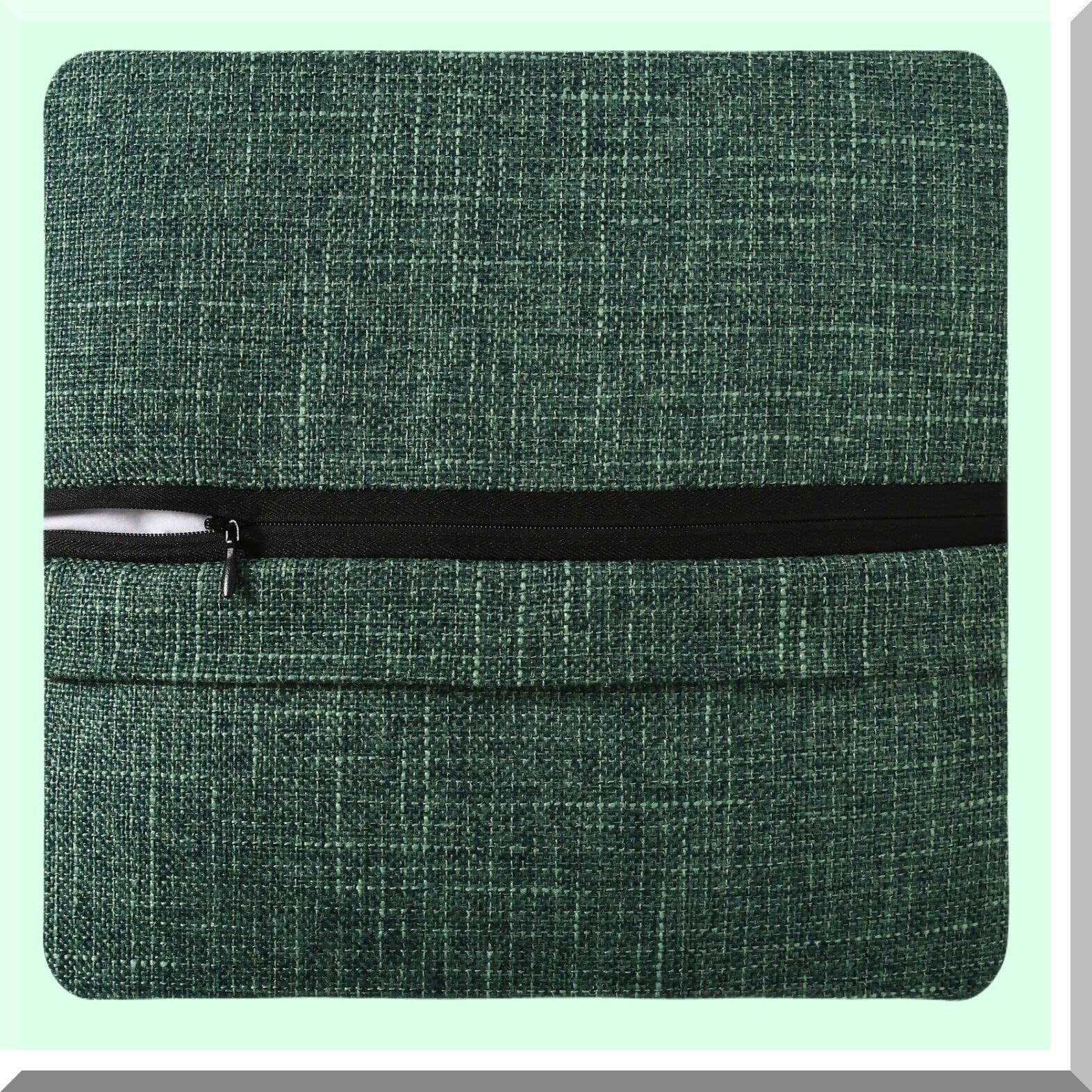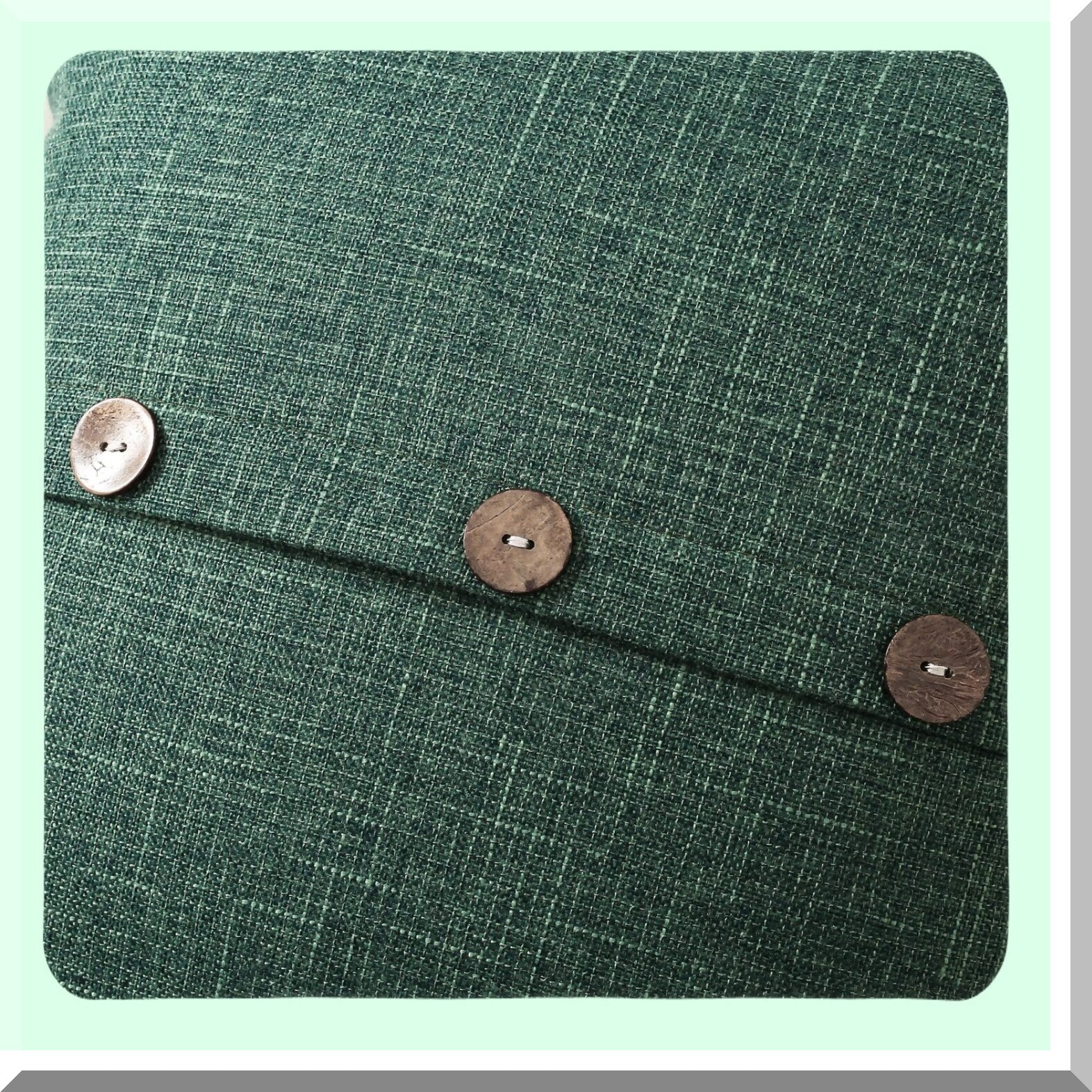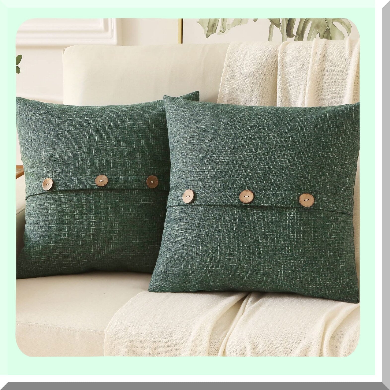 Vintage Emerald Green Linen Throw Pillow Covers - Set of 2, 18x18 Inch Square Cushion Cases with 3 Buttons - Modern Farmhouse Decor for Couch and Bed