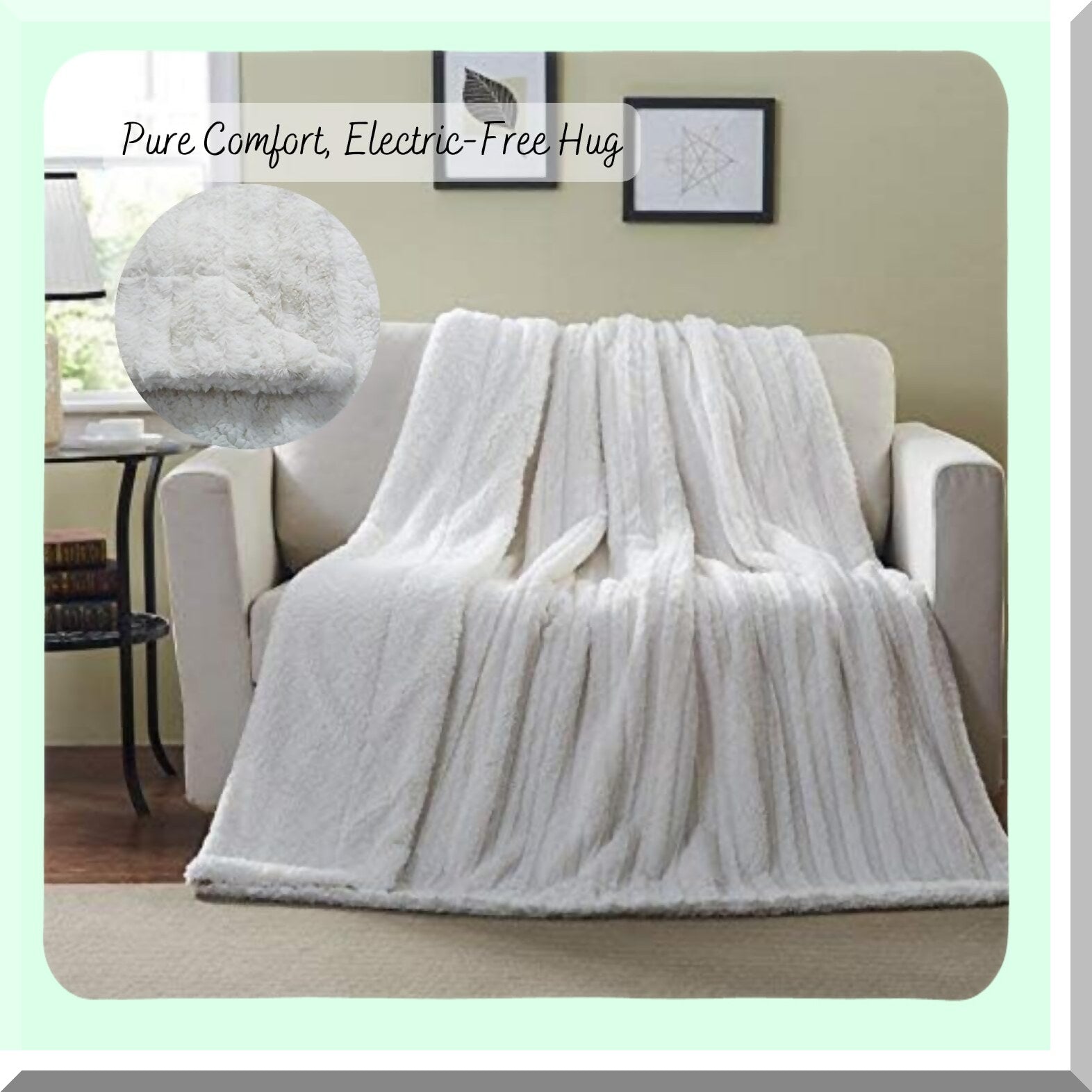 Stay cozy and warm this winter with our cruelty-free throw blanket, perfect for chilly nights and unexpected guests. This elegant cream blanket adds a touch of sophistication to any room, without the need for electricity. Snuggle up in bed or on the couch with this amazingly warm blanket, providing comfort and style all season long. Say goodbye to freezing nights and hello to luxurious warmth with our must-have throw blanket.