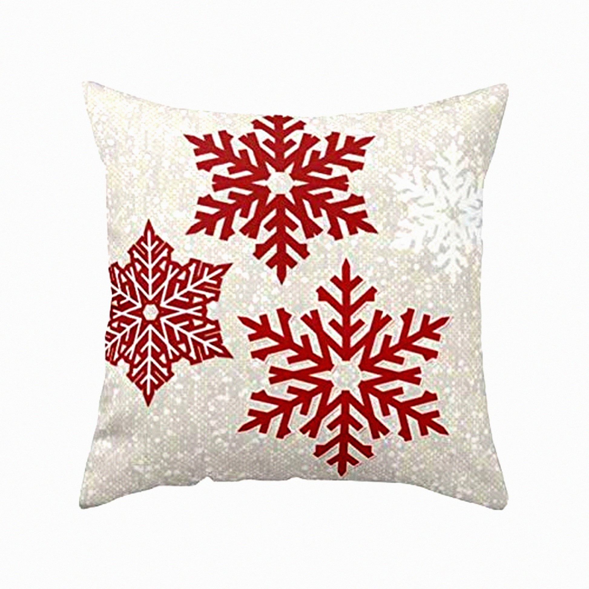 Snowflake Red Xmas Decor Pillowcase - Festive Square Cushion Cover for Home Decor - Merry Throw Pillow