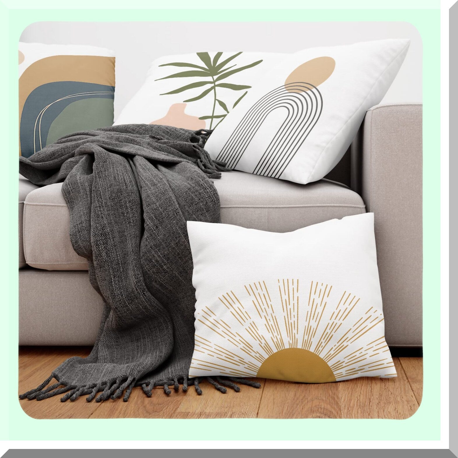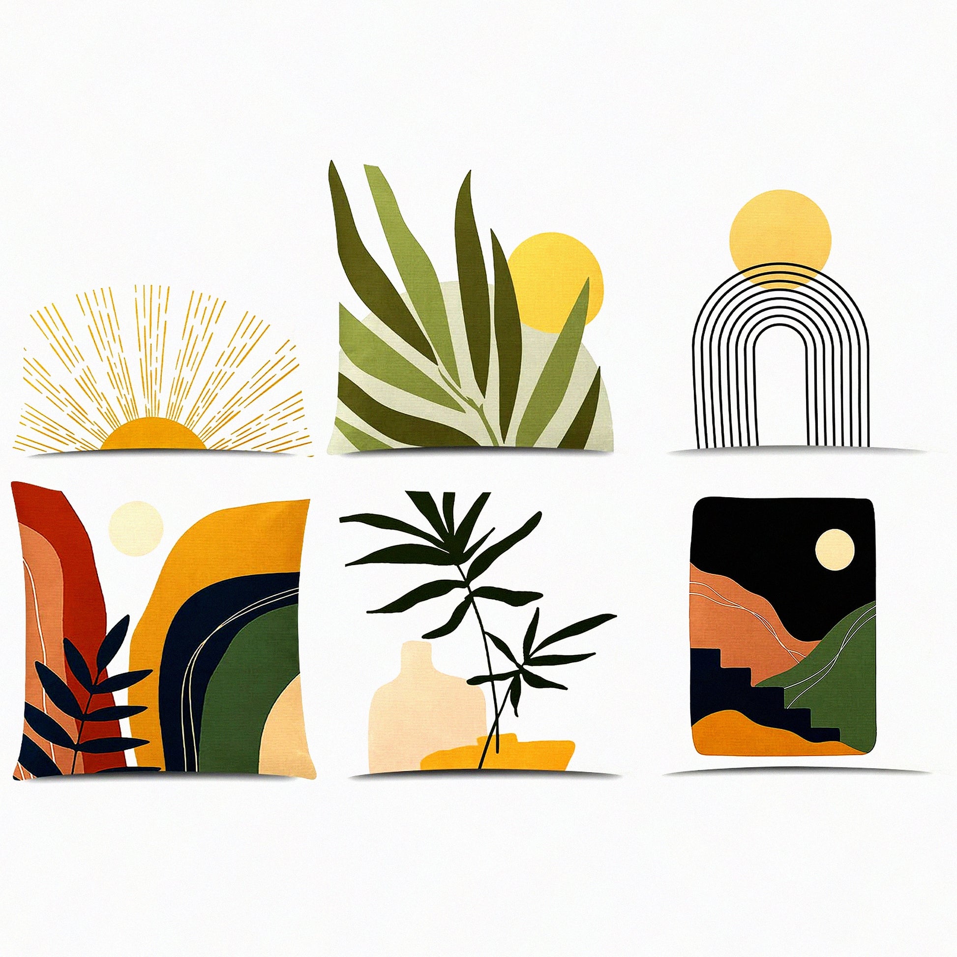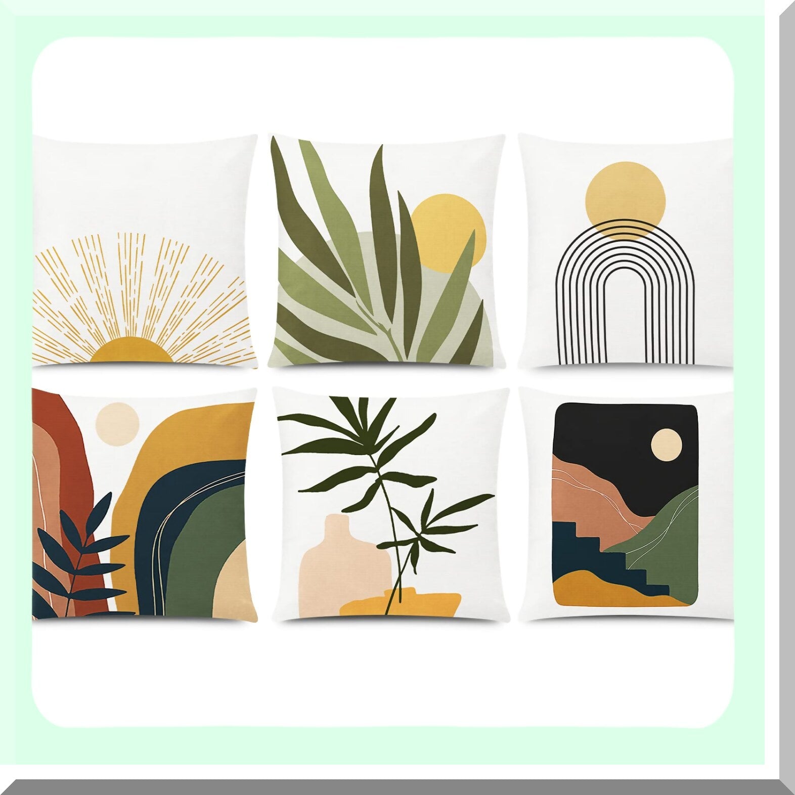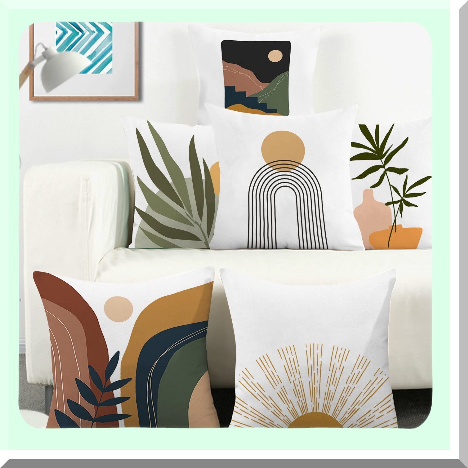 Sunset Leaves Boho Pillow Covers Set - 20x20 Decorative Throw Cushion Cover for Couch & Sofa Bed - Minimalist Nordic Home Decor - Modern Living Room Accent