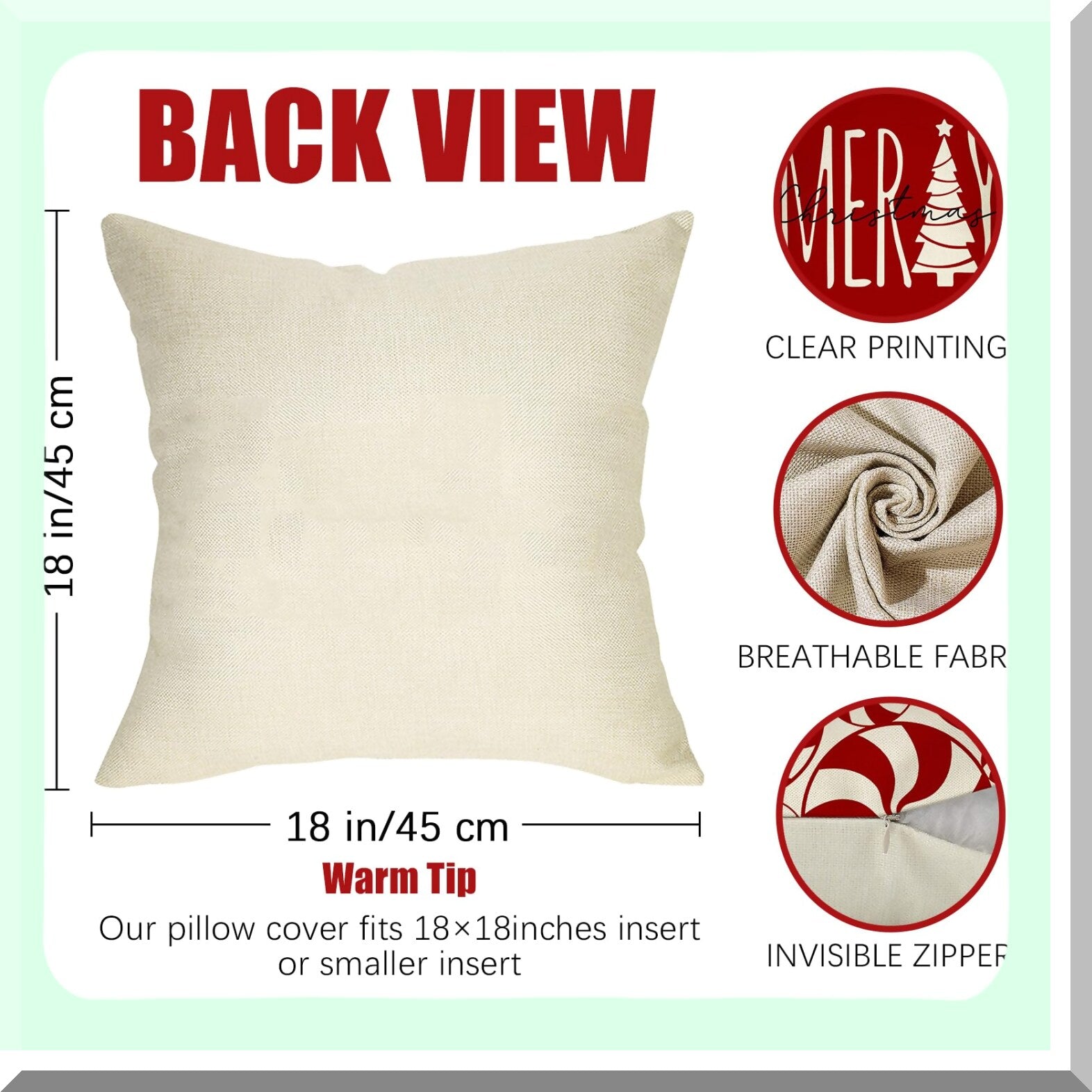 Holly Jolly Candy Cane Christmas Pillow Cover Set - Festive Winter Holiday Decorative Cushion Case for Porch Patio Outdoor Home Décor - 18 x 18, Set of 4