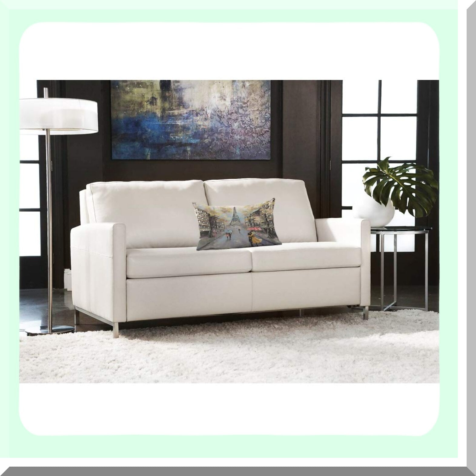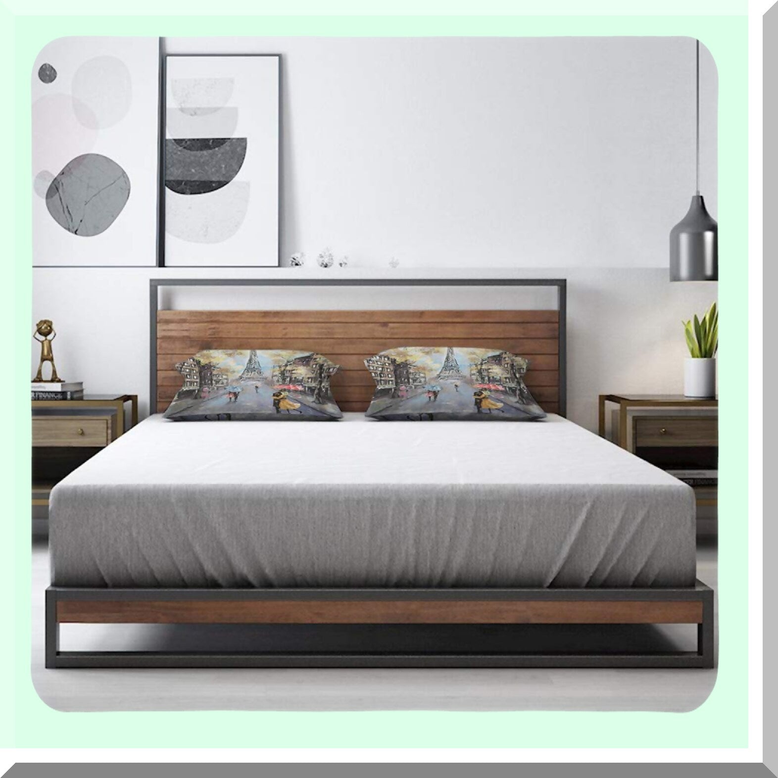 The Paris Throw Pillow Cover, sized 12x20 inches, features a unique painting of autumn lovers kissing on a rainy street in France with the Eiffel Tower in the background. Made from cotton linen, it is free from harmful dye substances, ensuring safety for your health. The cover's design complements various home decor settings, including sofas, couches, chairs, beds, and more. It is suitable for multiple environments such as homes, offices, cafes, and restaurants. This decorative pillow cover also makes a thoughtful gift for loved ones. Note that the product includes only the pillow cover and not the insert.