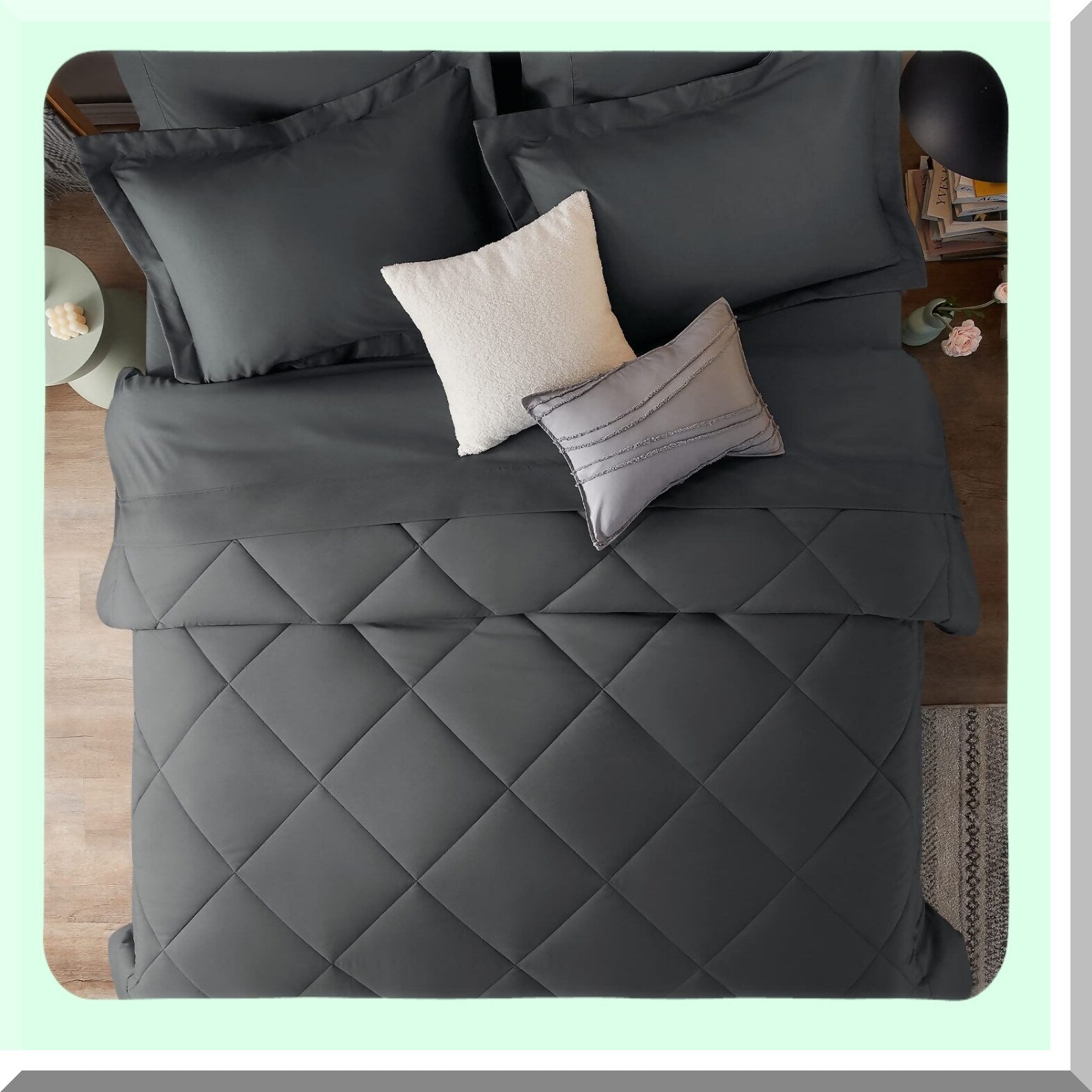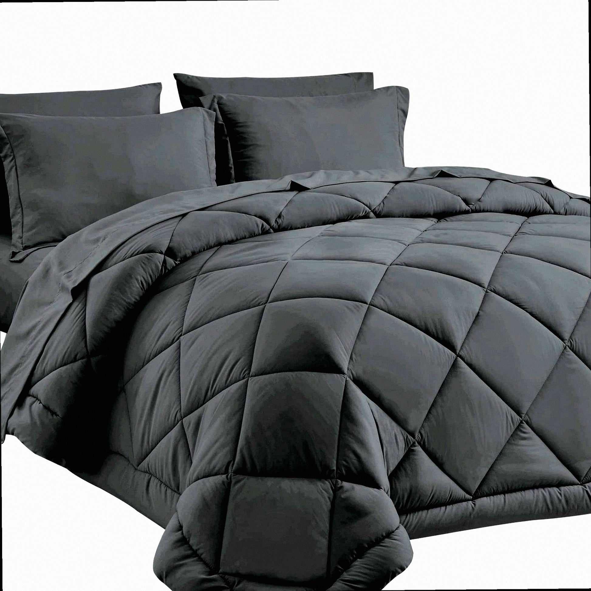 Ultimate Cozy Bedding Bundle - 7 Piece Dark Grey Comforter Set with Sheets | All Season Bed in a Bag | Includes Comforter, Shams, Sheets, Pillowcases