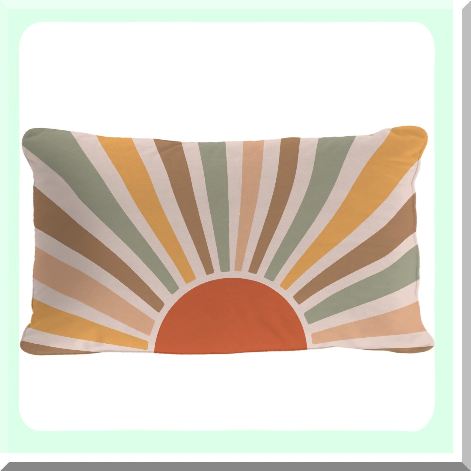 Sunrise Boho Abstract Throw Pillow Cover - Retro Sunset Decor for Girls Bedroom, Soft Pillow Case 12x20 Inch - Sunshine Room Decoration