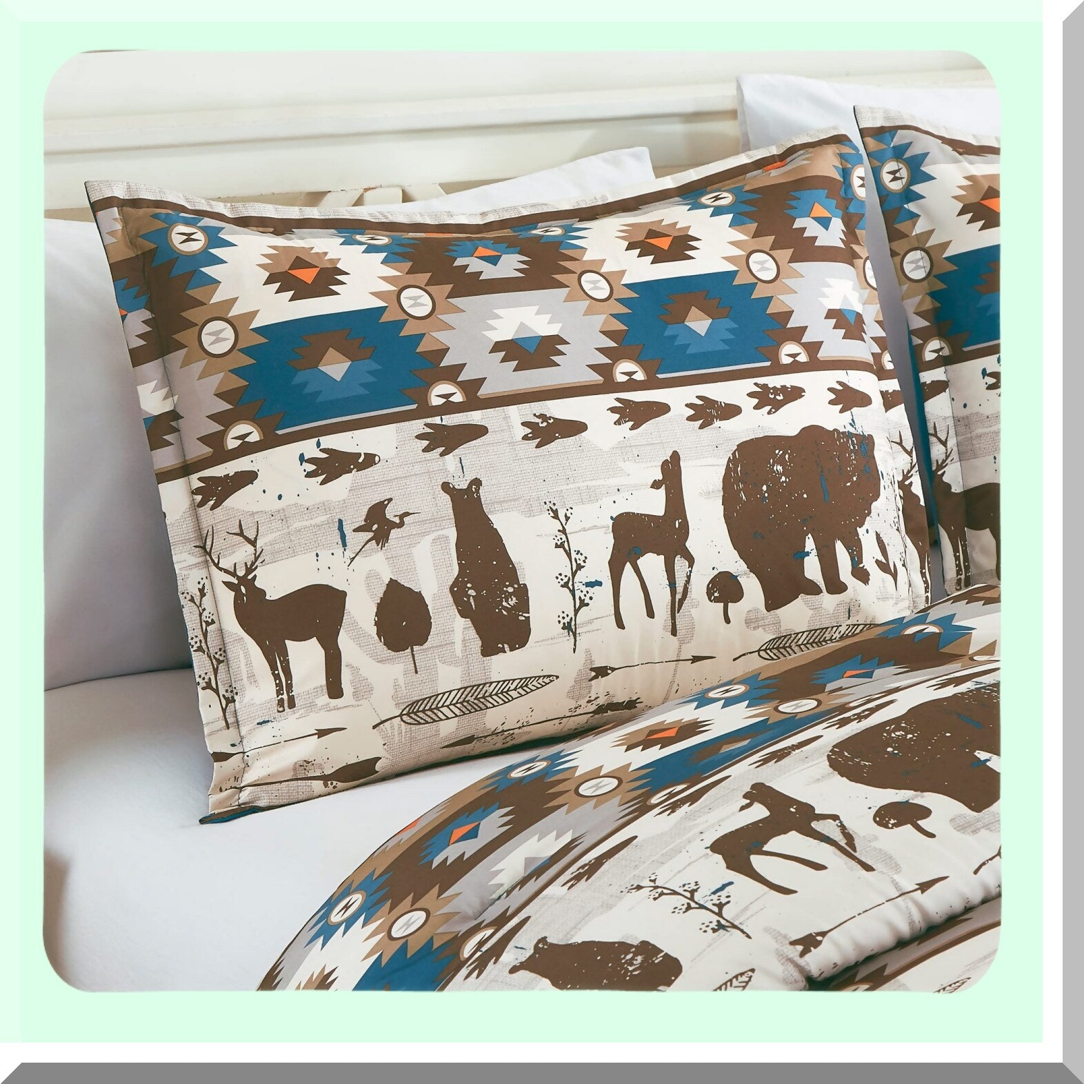 Southwest Wilderness Comforter Set - Queen Size Rustic Cabin Lodge Bedding with Moose and Bear Print in Brown, Cream, and Teal Colors, Includes Pillow Shams