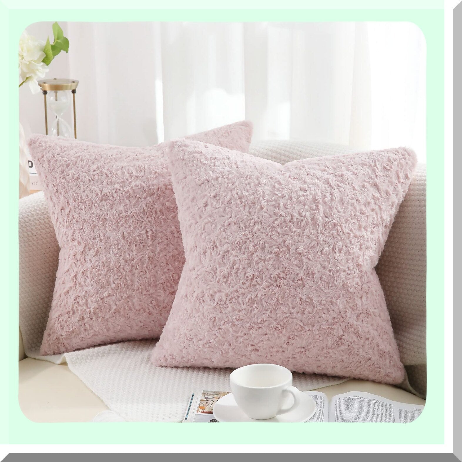 Rose Bliss 3D Pink Pillow Covers - Set of 2 | 18x18 Inch Fluffy Decorative Cushion Cases for Couch, Bed, Sofa | Rose Pattern Design