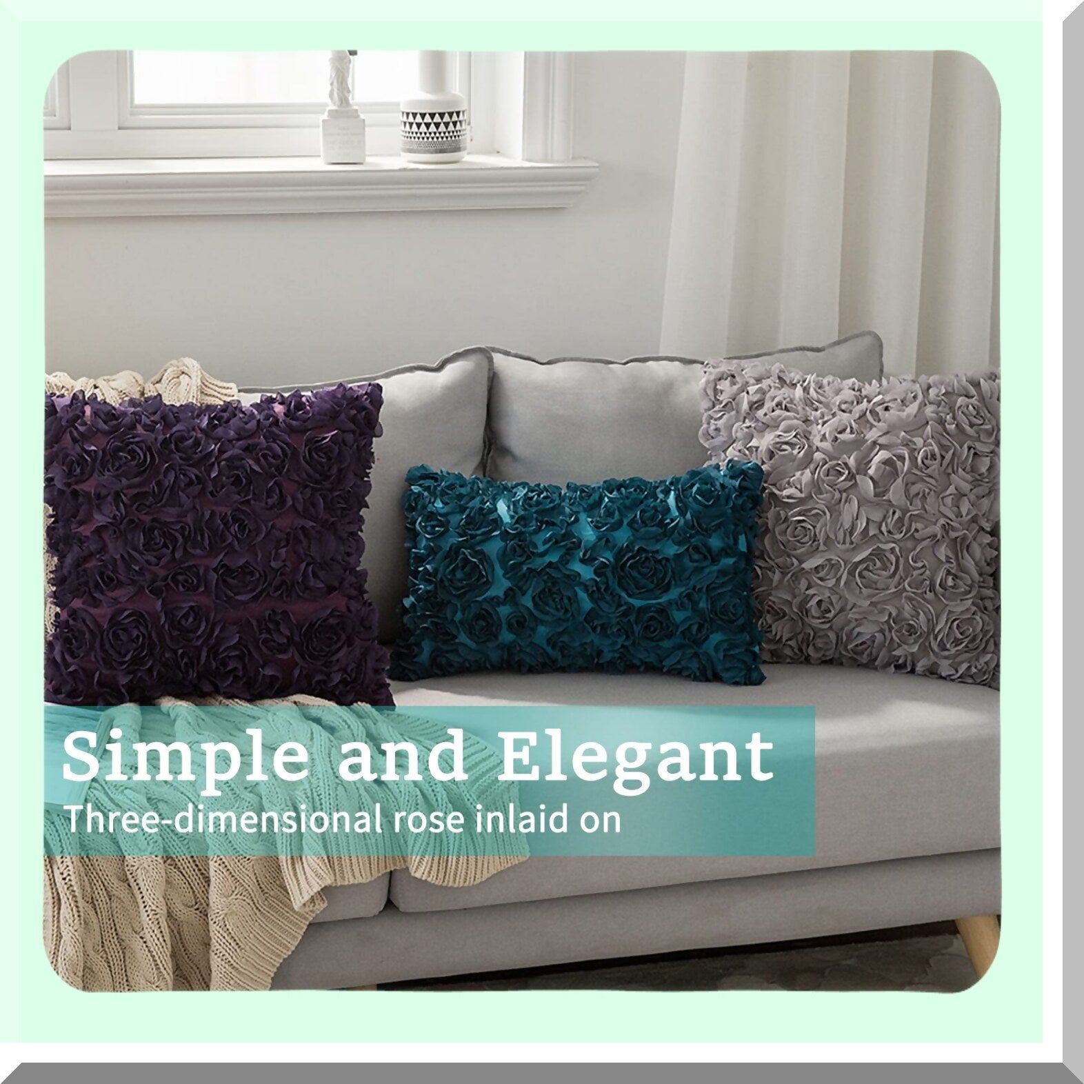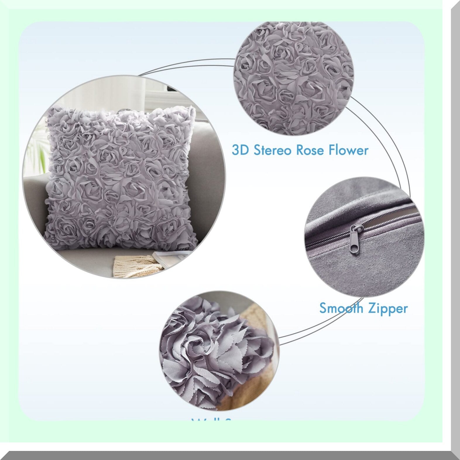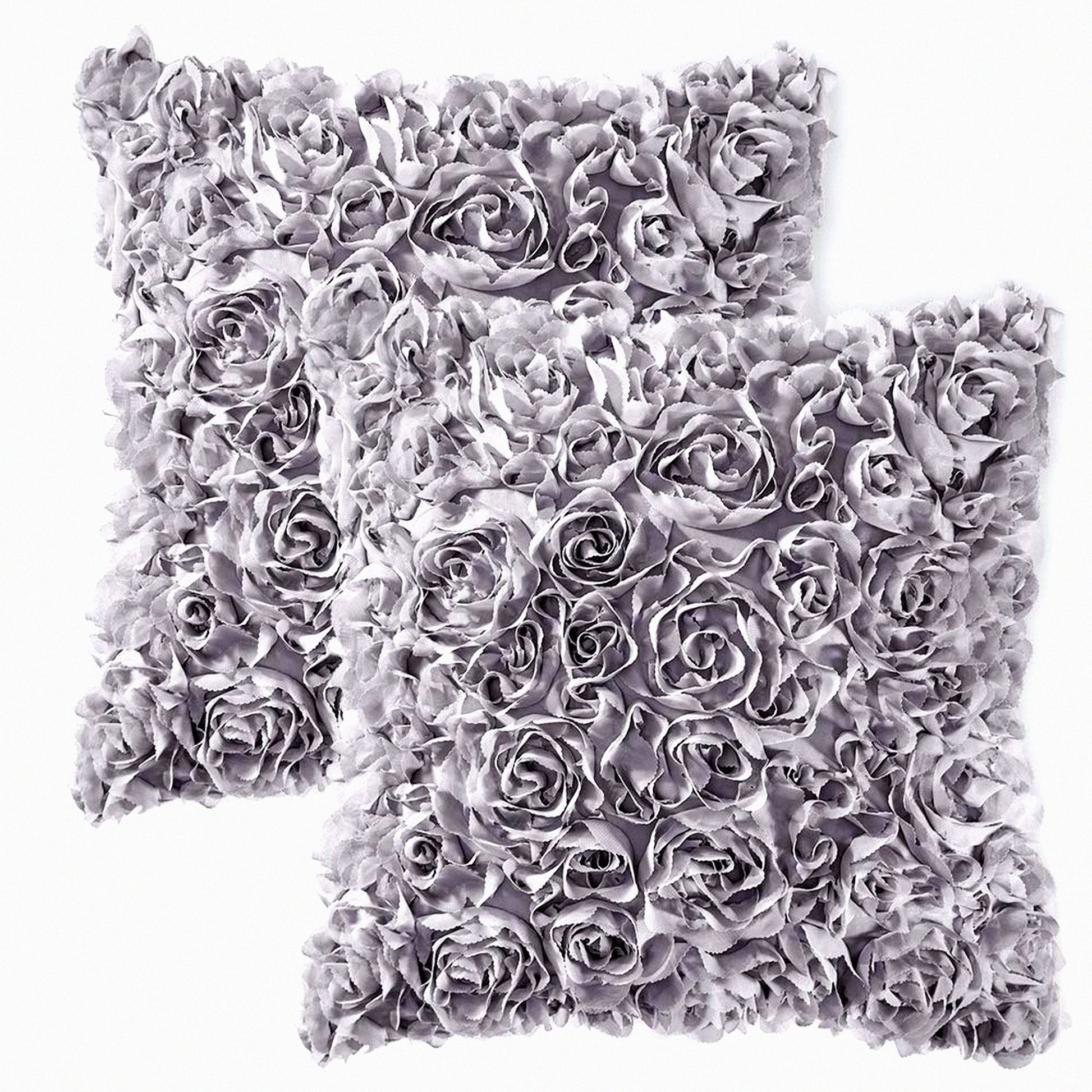 Romantic 3D Chiffon Rose Flower Pillowcase Set - Grey Square Pillow Cover for Sofa, Bedroom, Car - Valentines Day Decor - Pack of 2, 12x12 Inch