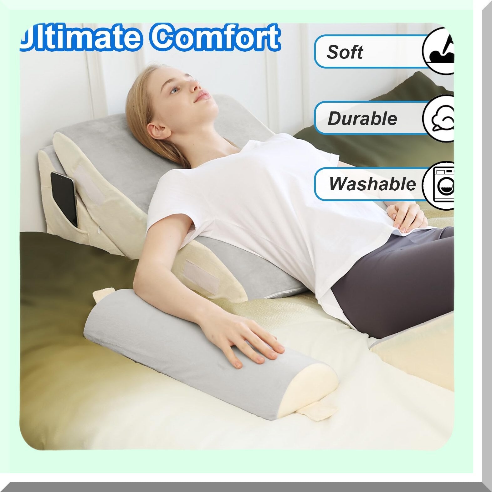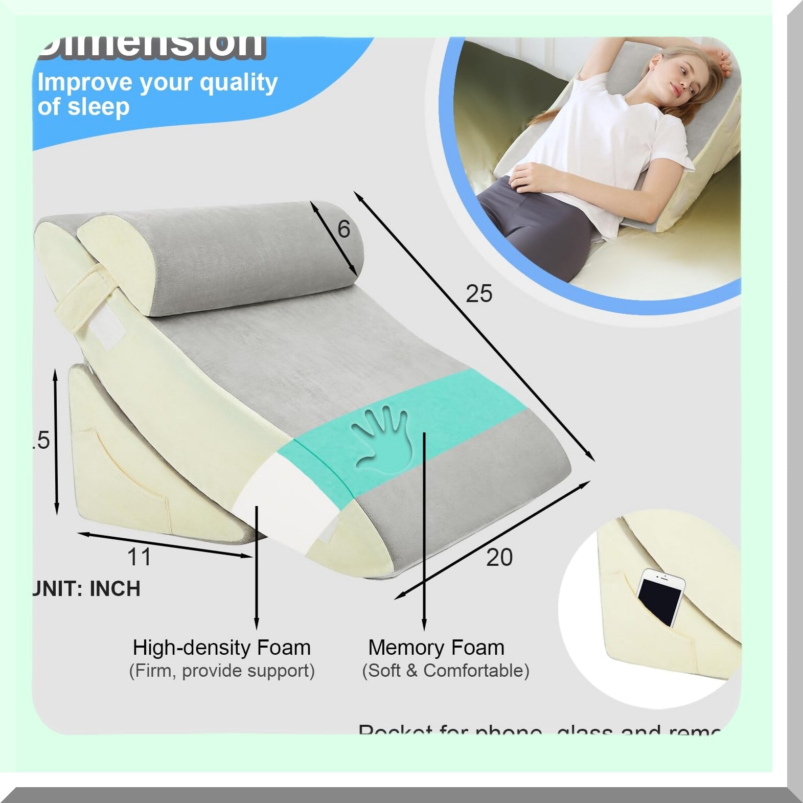 The premium memory foam pillow provides the necessary support while ensuring breathability and comfort. The bed wedge pillow set is designed to offer users a comfortable and supportive sleeping experience. The memory foam material molds to the user's shape, providing personalized support. The pillow's breathability helps regulate temperature and prevent overheating during sleep. Overall, the practical benefits include improved sleep quality, reduced discomfort, and enhanced relaxation for users.