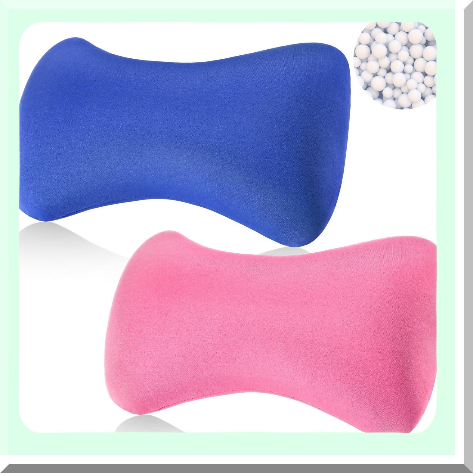 ComfortBead Neck Support Duo - 2 Pack Bone Headrest Pillows for Adults. Soft Cushion Microbead Bolster Pillows for Back Sleeping on Home Sofa, Bed, or Travel. Pink & Blue Options.