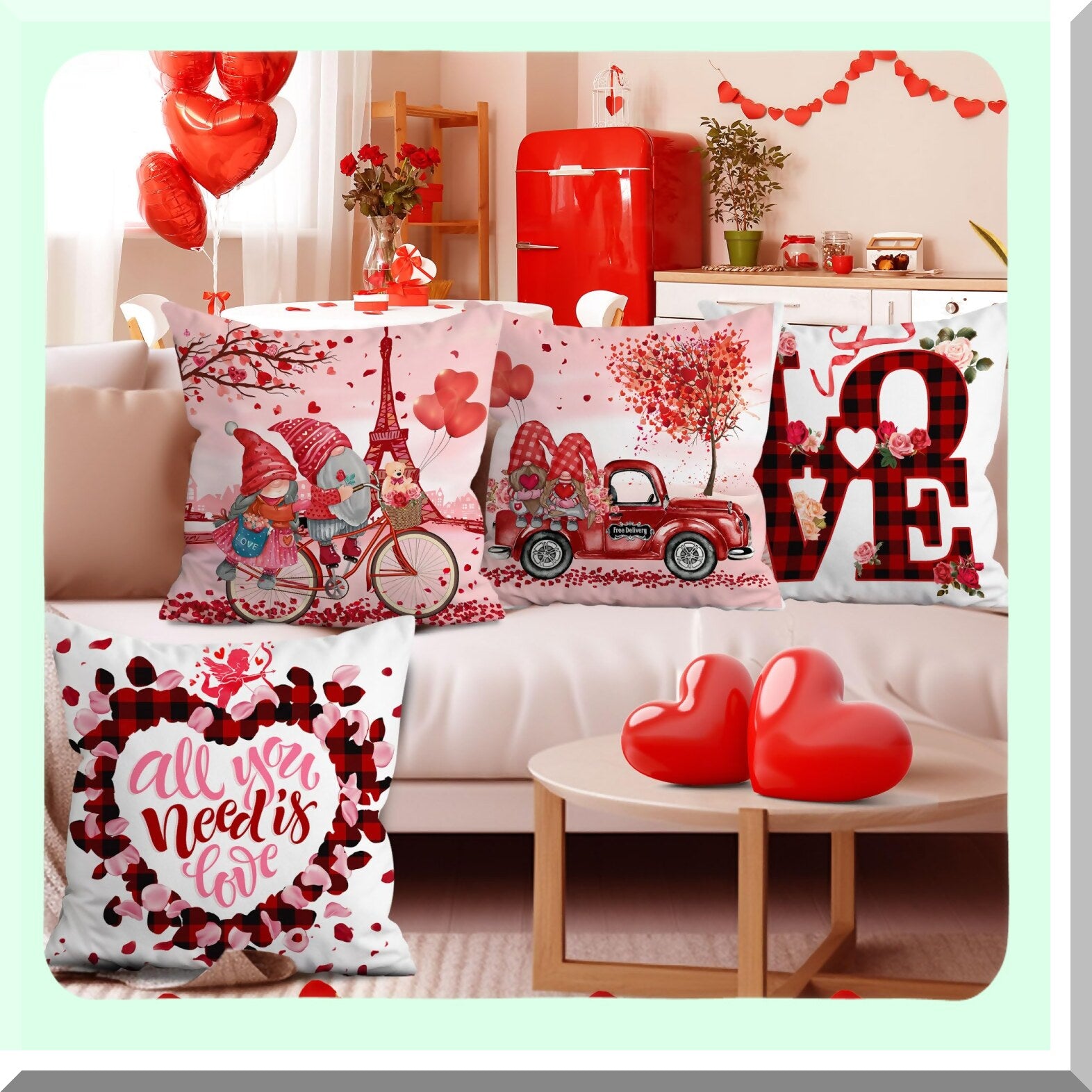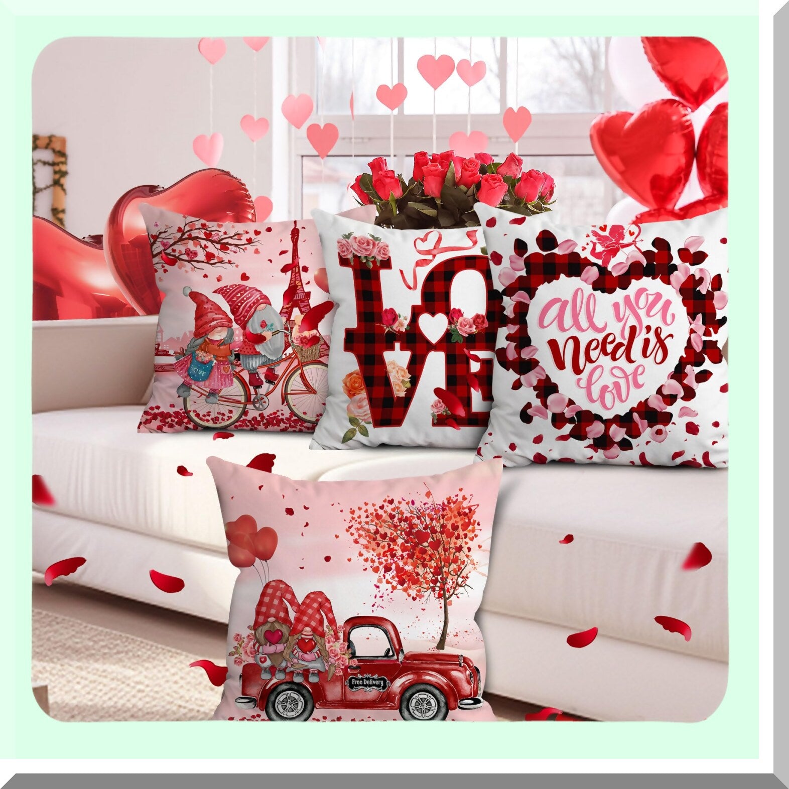 Valentine's Gnome Truck Pillow Covers - Set of 4 | Farmhouse Decorative Throw Pillow Covers 18x18 | Soft Pink Cushion Covers for Couch & Outdoor Home Décor