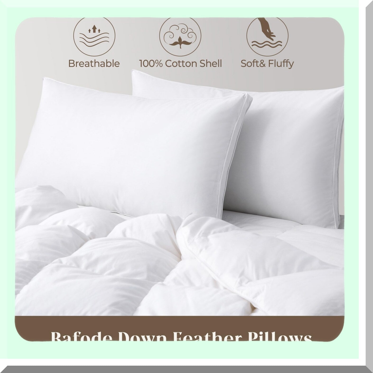 Luxury Comfort Down Pillows - Set of 2 Standard Size, 100% Cotton Cover, Gusseted Design for Back, Stomach, Side Sleepers. Ultimate Support and Softness.