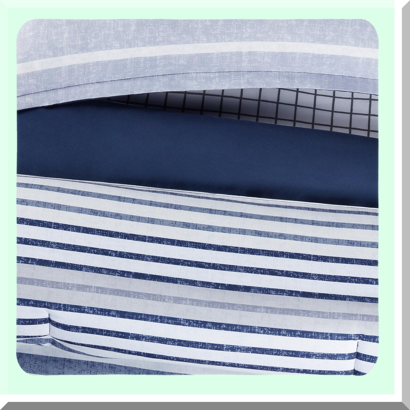 Introducing our 5-piece Twin/Twin XL bedding set, featuring a modern variegated striped print that adds a touch of style to any room. Crafted with innovative technology, our Simply Clean Comforter Set is hypoallergenic and inhibits odor growth for a fresher, cleaner bed. The set includes a comforter, flat sheet, fitted sheet, pillow sham, and pillow case, all designed for convenient care with stain release treatment. Complete your bedding collection with coordinating Simply Clean products, from sheets to duvets, for a cohesive look throughout your home. Upgrade your bedding experience with our high-quality, easy-care set today!
