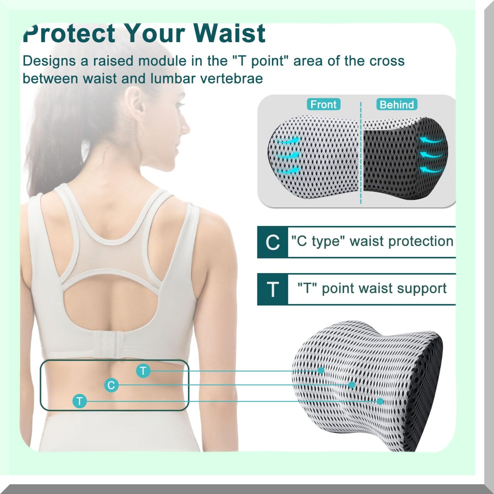 MemoryFoam Lumbar Support Cushion - Back Pain Relief Pillow for Office Chair, Car, Bed - GreyWhite Back Support Pillow - Lower Back Support Cushion