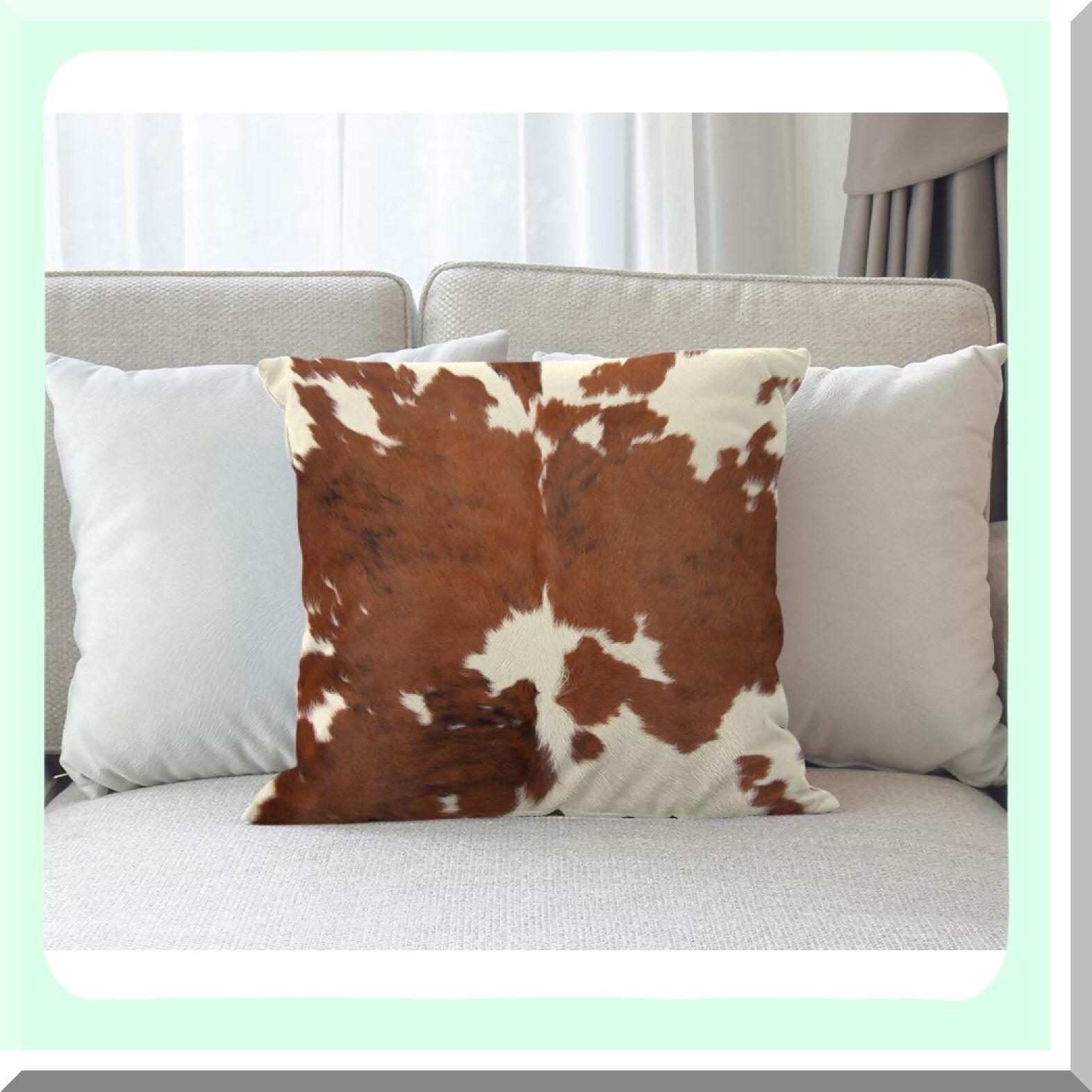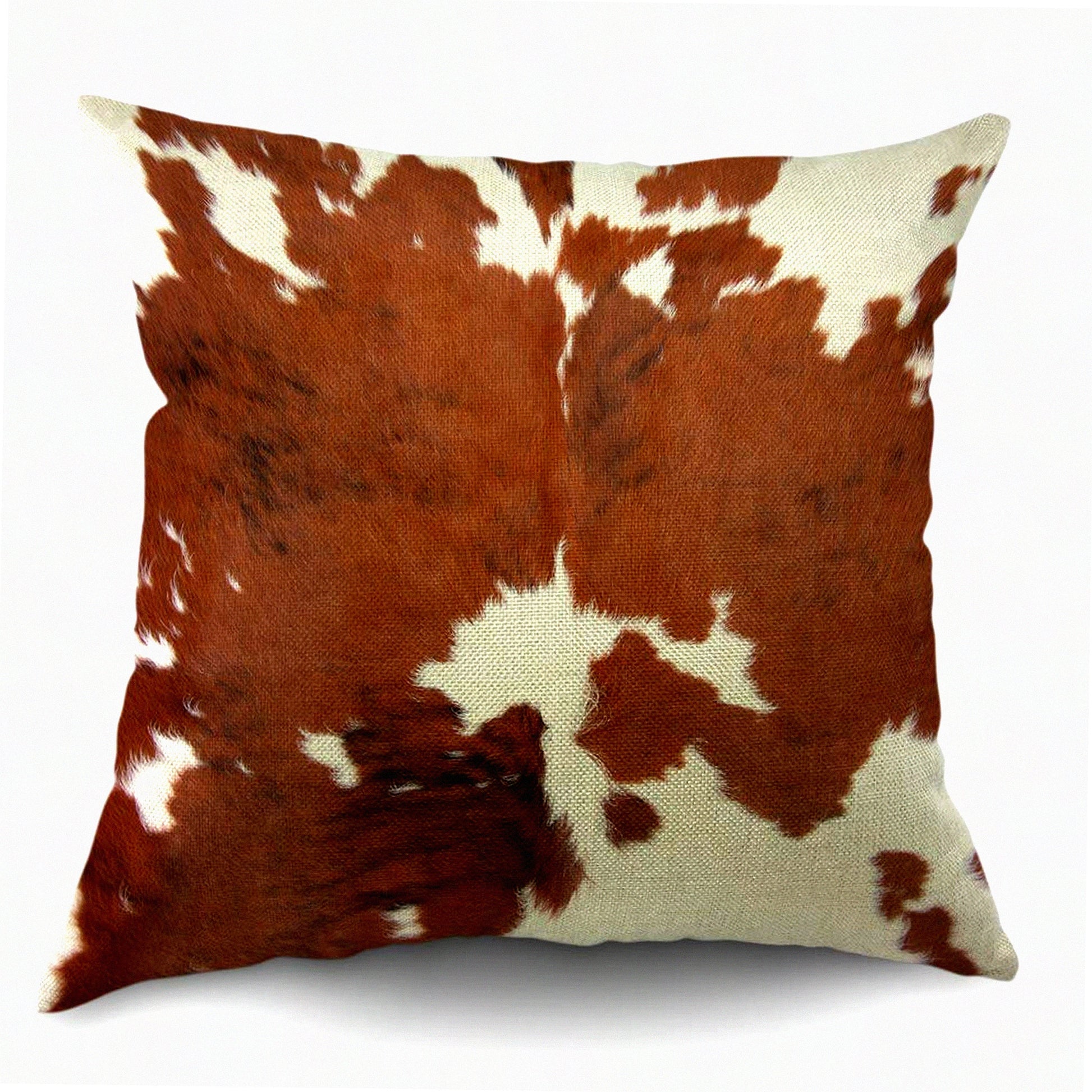 Farmhouse Chic Cowhide Print Decorative Pillow Cover - 18x18 Inch Square Cushion Case for Sofa & Bedroom Decor - Brown Cow Animal Theme Cotton Linen Throw Pillow Case