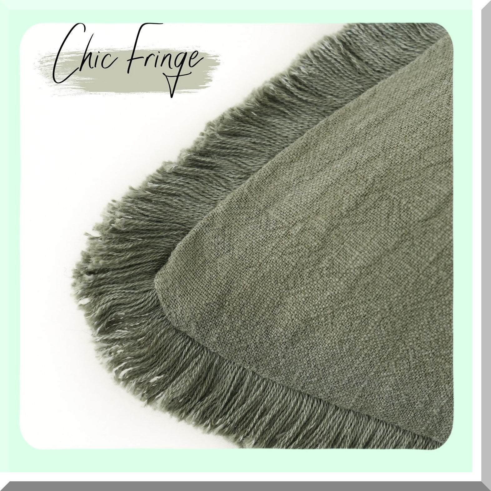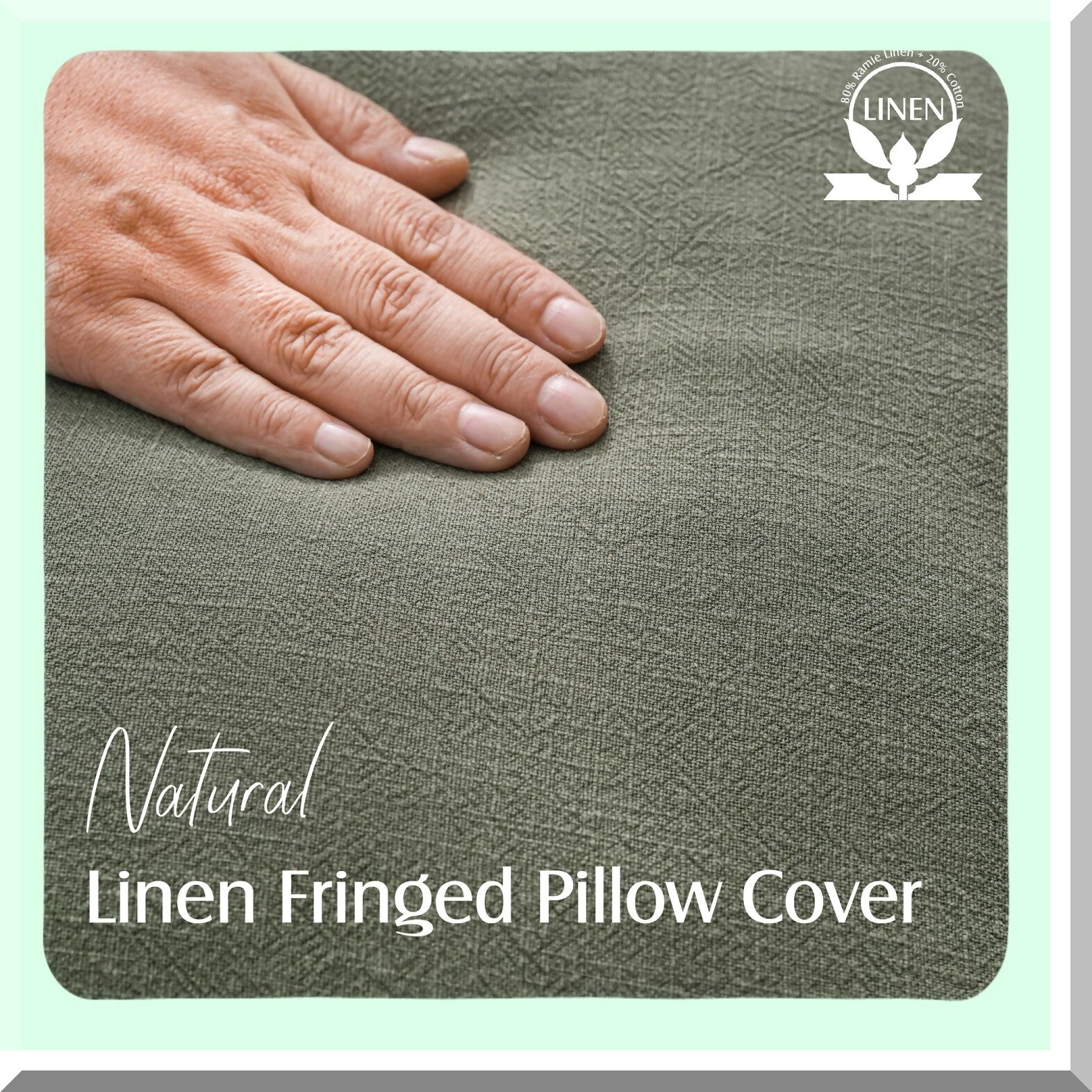 Boho Farmhouse Fringe Pillow Covers - Set of 2 Cozy Linen Cushion Cover with Tels Soft Accent for Living Room Decor, Olive Green 18x18 Inch