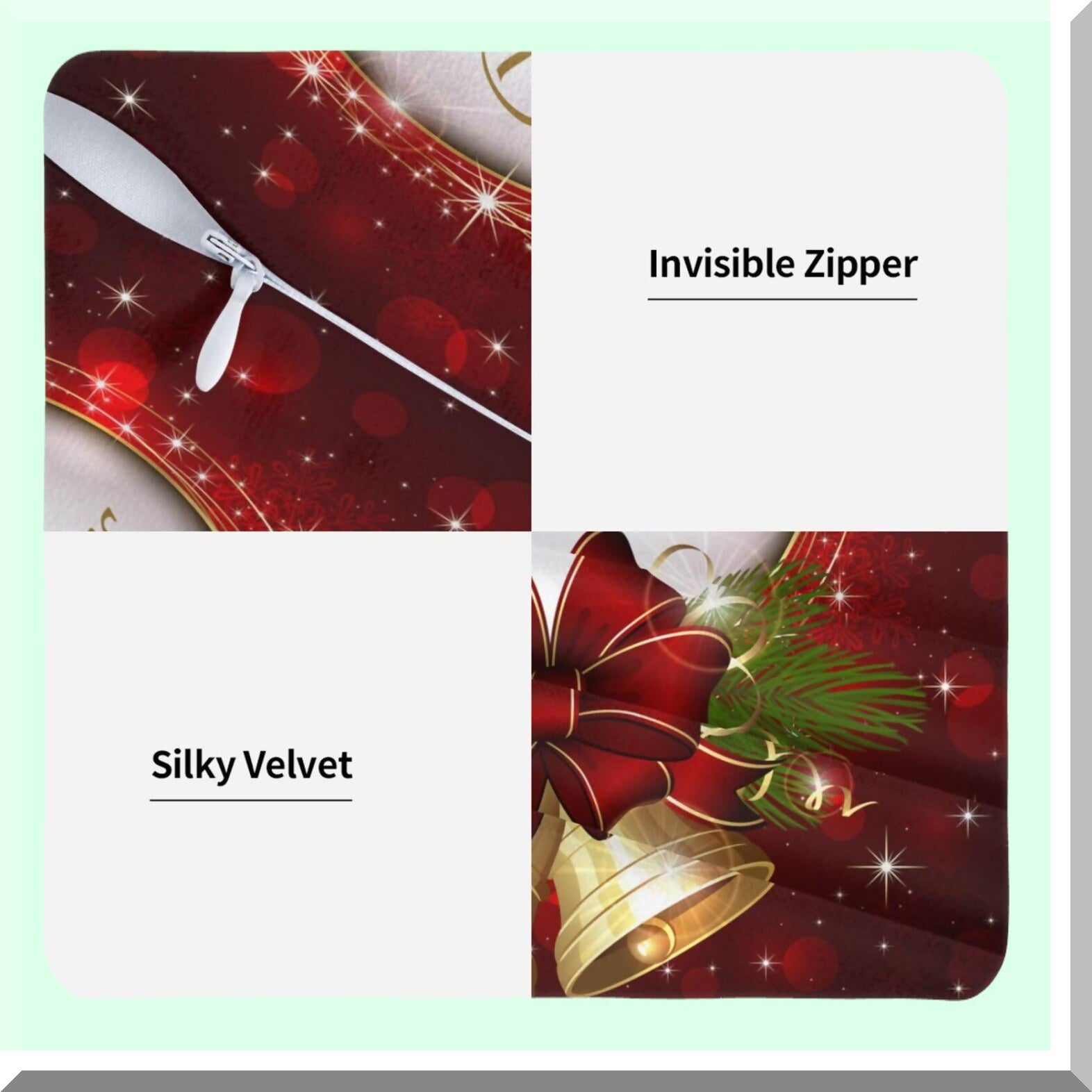Snowflake Merry Bell Pillowcase Set - Decorative Square Cushion Cover for Sofa, Couch, Bedroom, Car - Indoor/Outdoor Throw Pillow Case - 18x18 Inches - Pack of 2