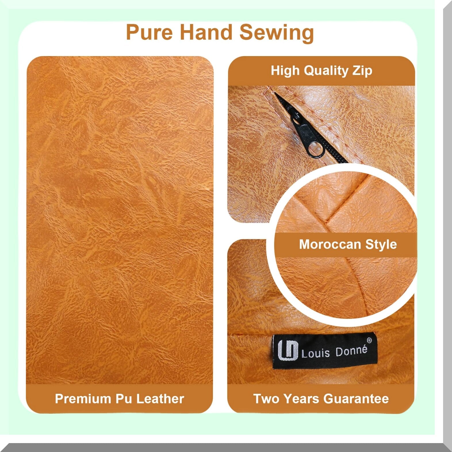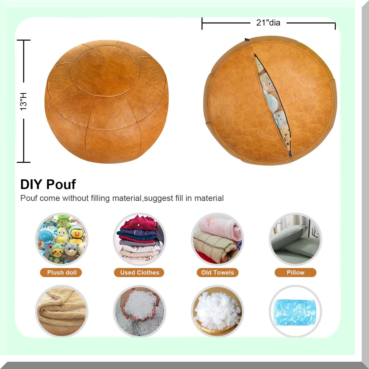 Orange Moroccan Leather Pouf Ottoman Storage Cover - Round 21" Foot Rest for Living Room & Bedroom - Valentines Day Gift for Men & Women