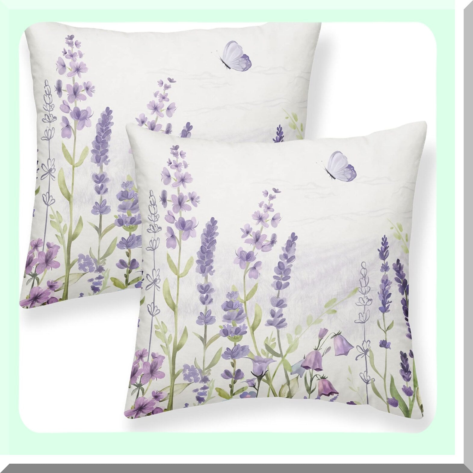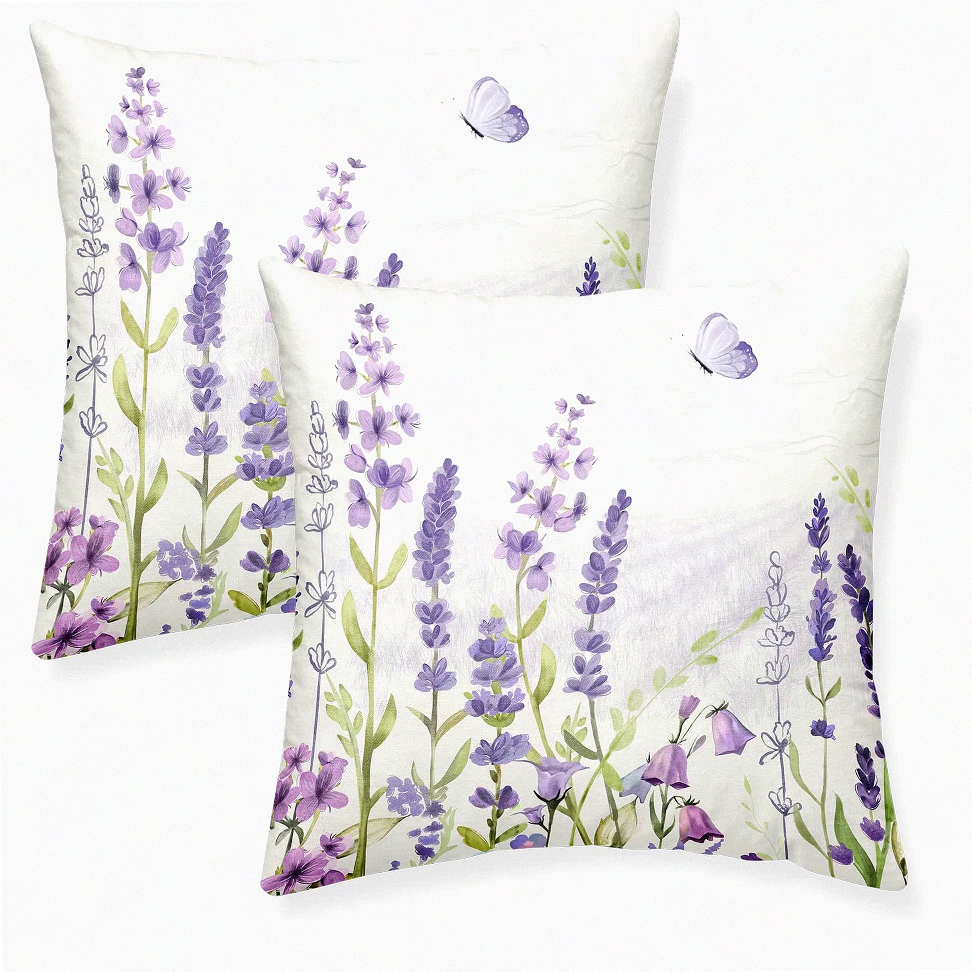 Lavender Fields Decorative Pillow Set - 16x16 Inch Watercolor Floral Cushion Covers for Farmhouse Home Decor, Purple Flowers Throw Pillow Covers for Sofa Couch Outdoor Use