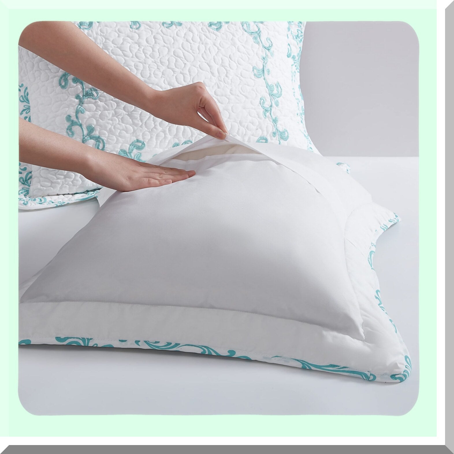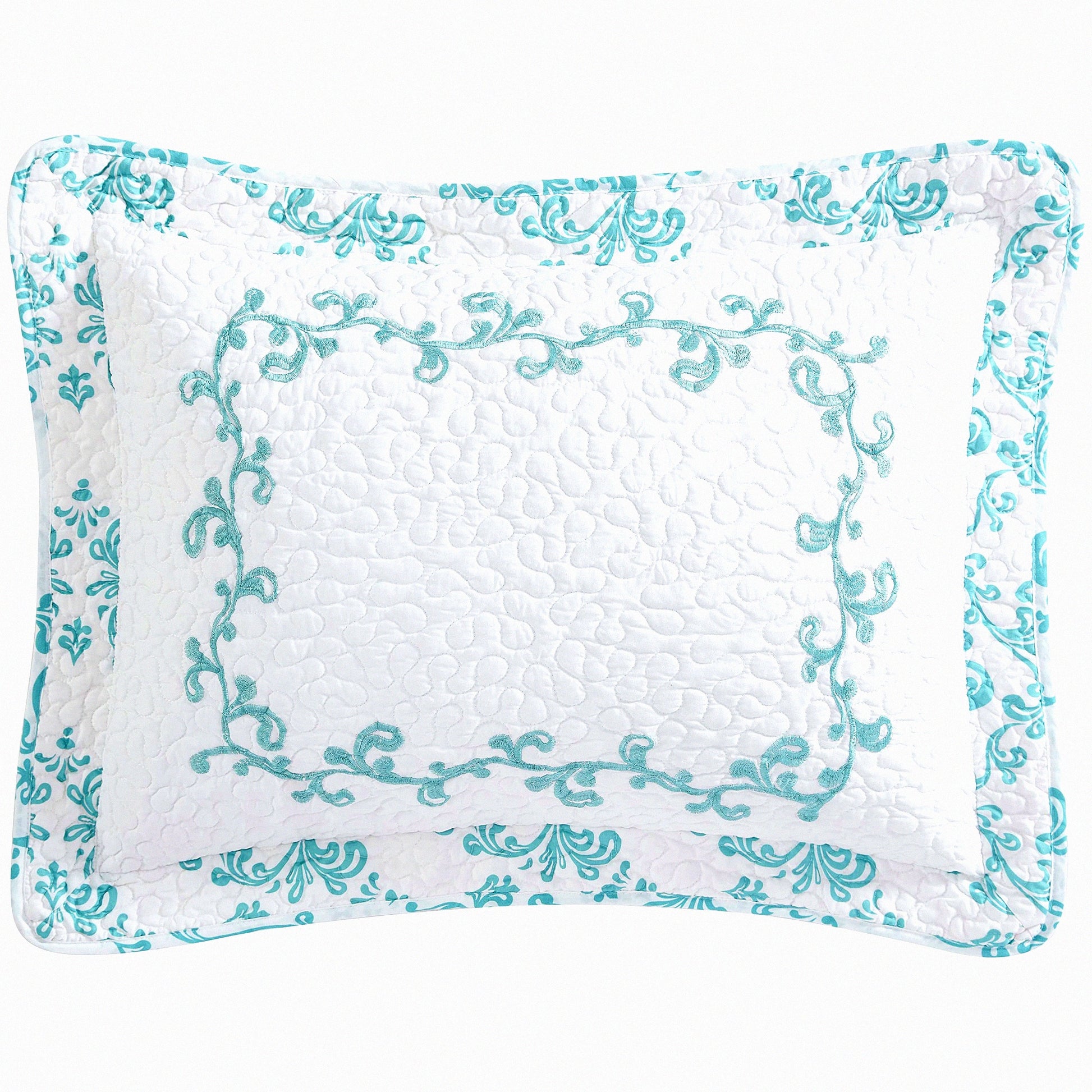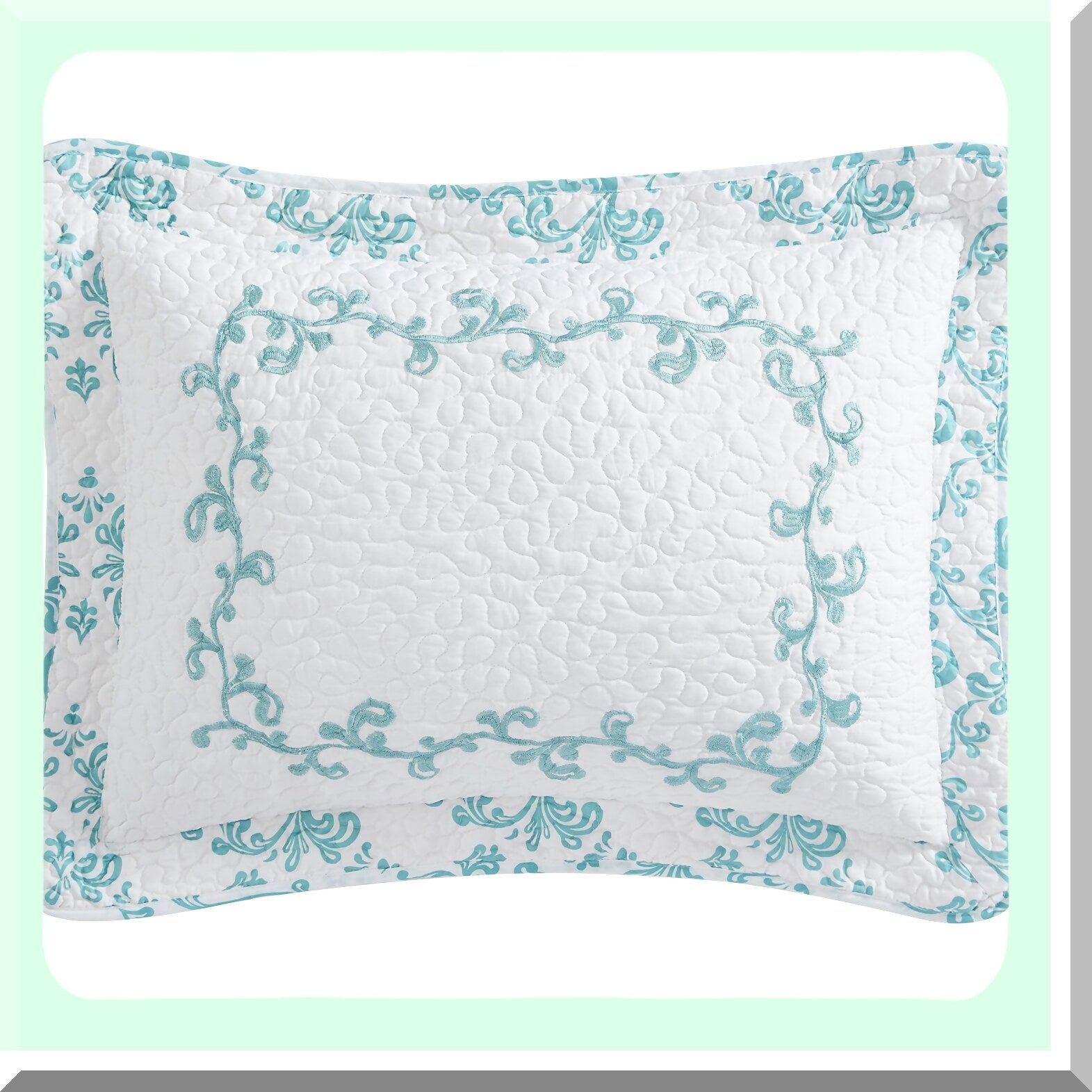 The practical benefits of the pillow sham include enhancing the aesthetic appeal of the bedding with its embroidered blue vine design. This can add a touch of elegance and sophistication to the bedroom decor. The sham also provides protection for the pillow, keeping it clean and extending its lifespan. Additionally, the sham is easy to remove and wash, making it convenient for regular maintenance. Overall, the pillow sham offers both decorative and functional advantages, improving the overall look and feel of the bedroom while also providing practical benefits for the user.