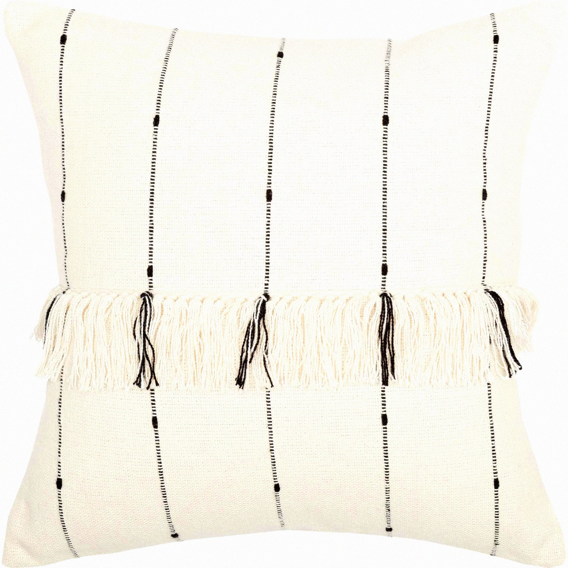 Rustic Boho Farmhouse Fringe Pillow - Cream Black Stripe - Urban Chic 20x20 - Natural Farmcloth Cover