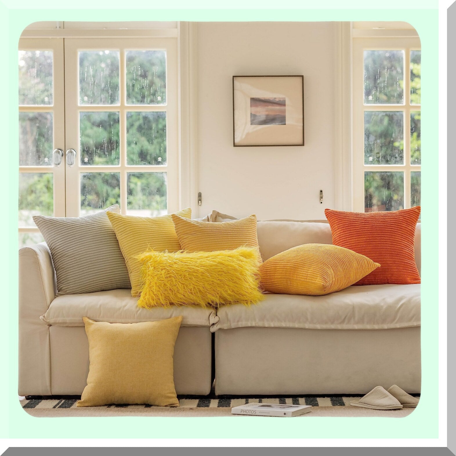 FuzzySpring Decorative Oblong Pillow Covers - Set of 2 Yellow Throw Pillow Cover for Couch Sofa Bed - 12x20inches, 30 x 50cm