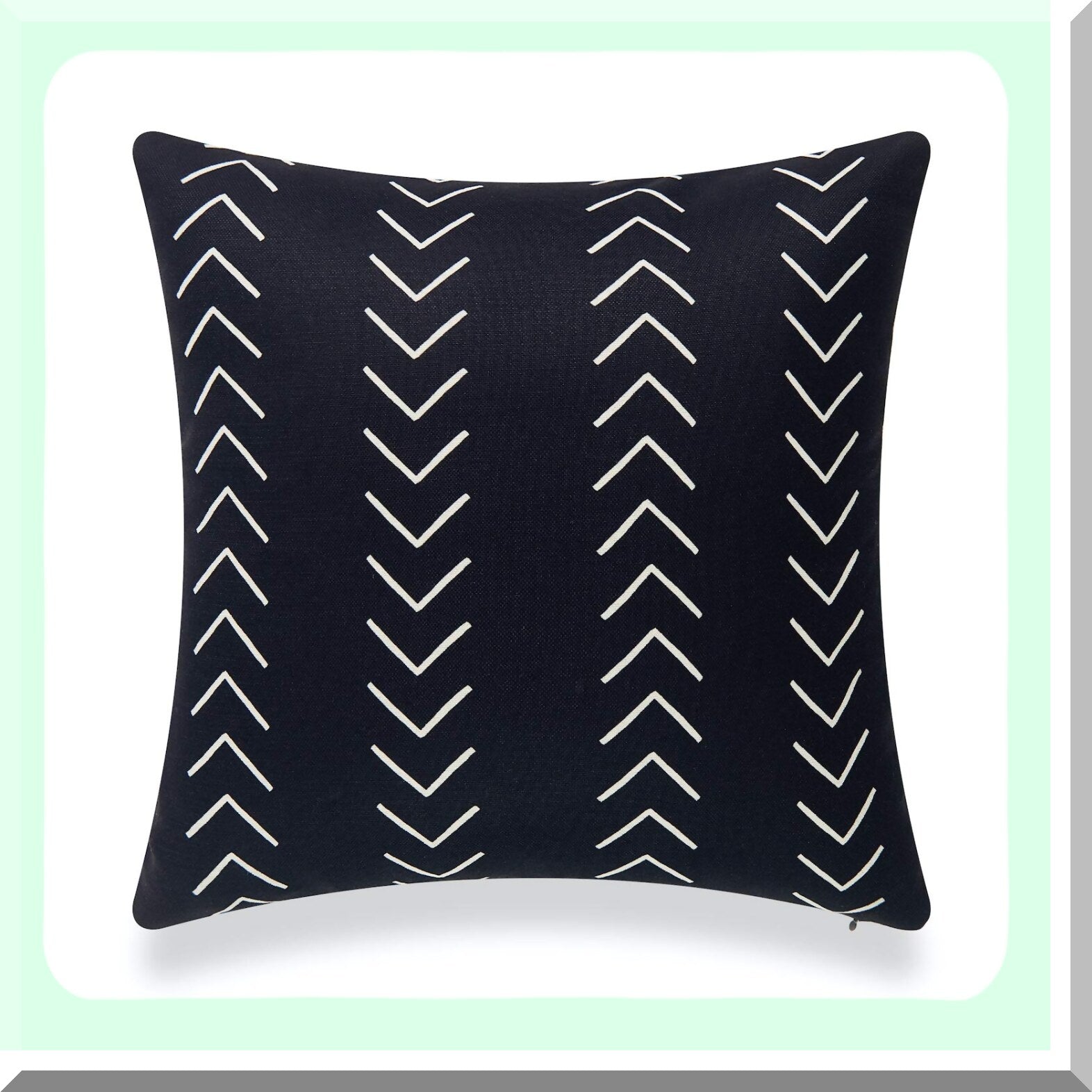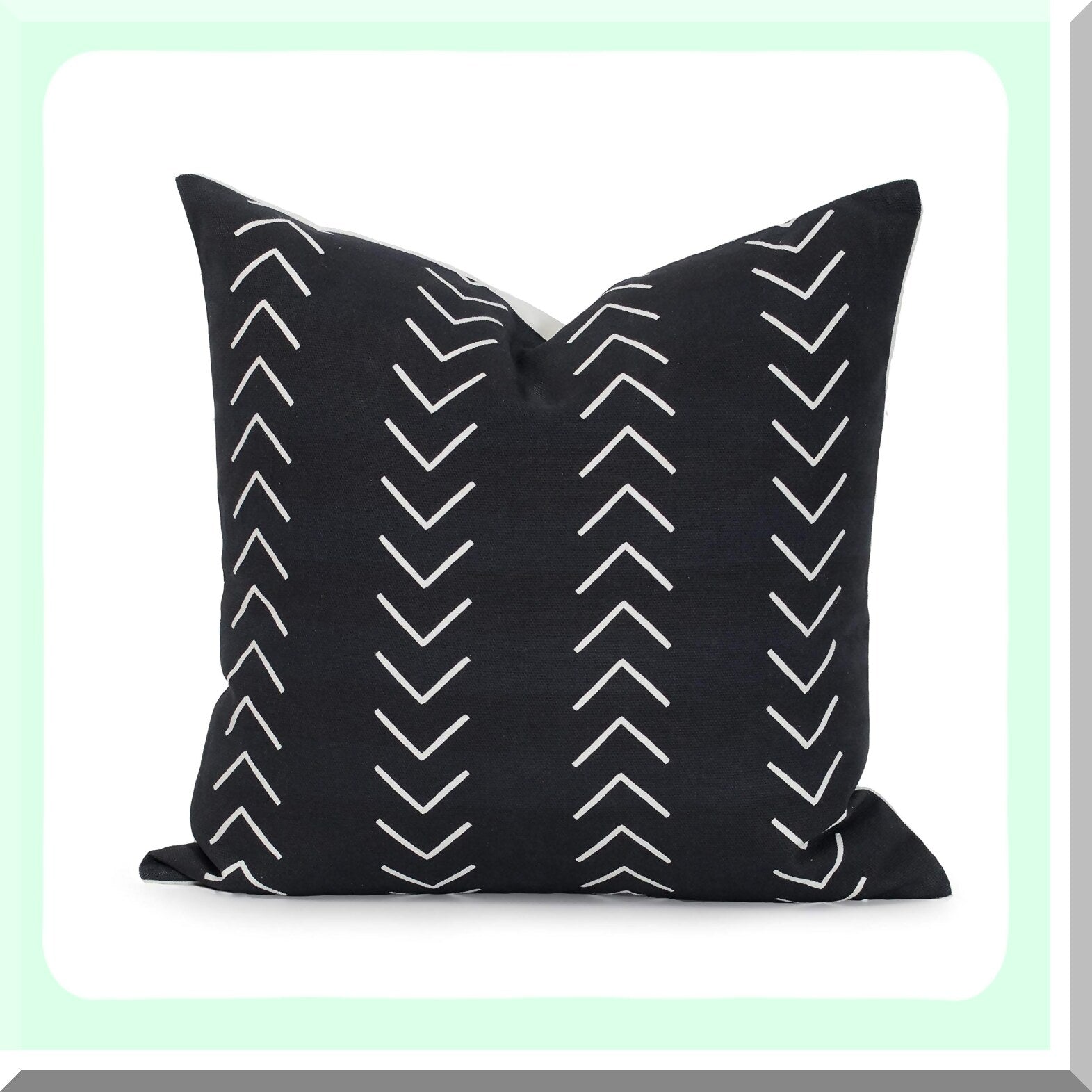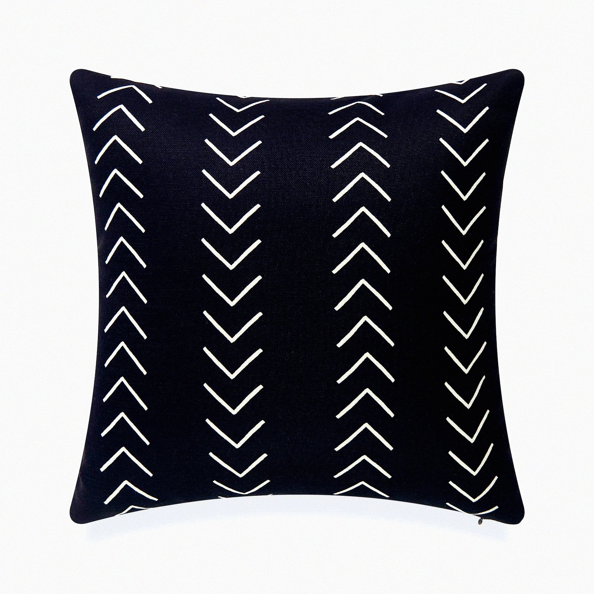Mountain Stripe Cotton Throw Pillow Cover - Mud Cloth Inspired Black & White Case - Heavy Weight 18"x18" Decorative Cushion Protector