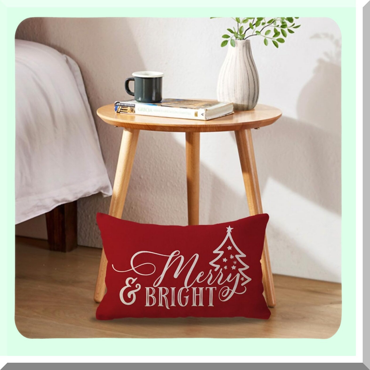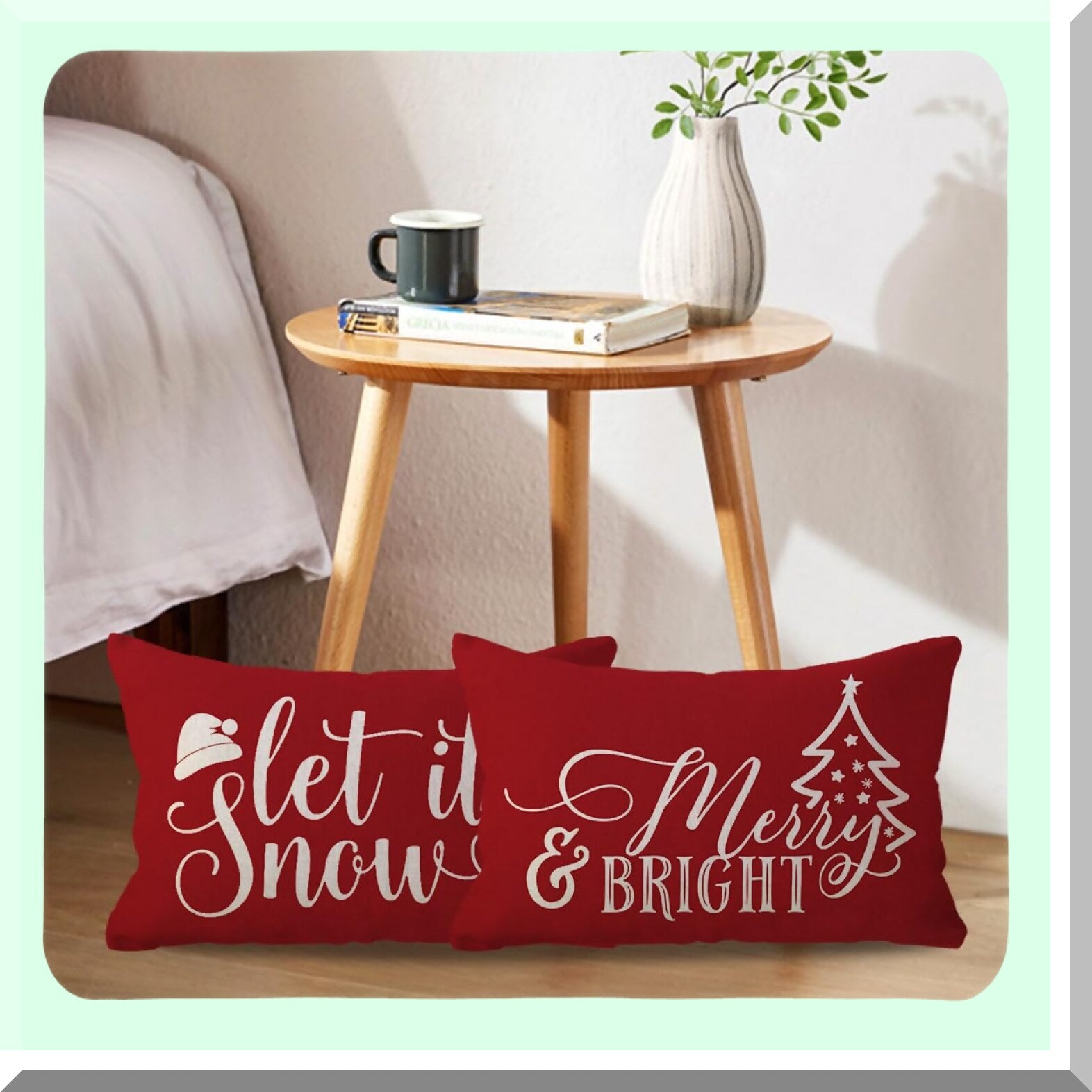 Snowy Farmhouse Lumbar Pillow Covers - Set of 2 Merry and Bright Throw Cushion Cases for Couch/Sofa/Porch Decor - Let It Snow Tree/Snowflake Design - 12x20 Red Decorations