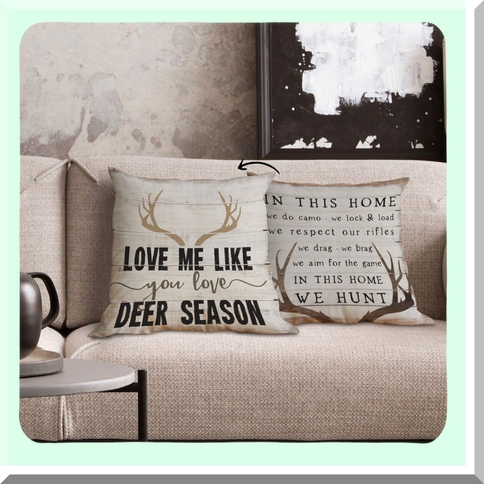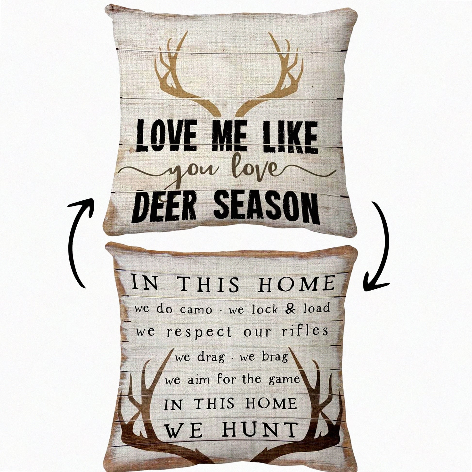 Rustic Deer Season Love Pillow Covers - Hunting Decor for Home - Gifts for Couples - Farmhouse Decor - Wife, Husband, Him - 18x18