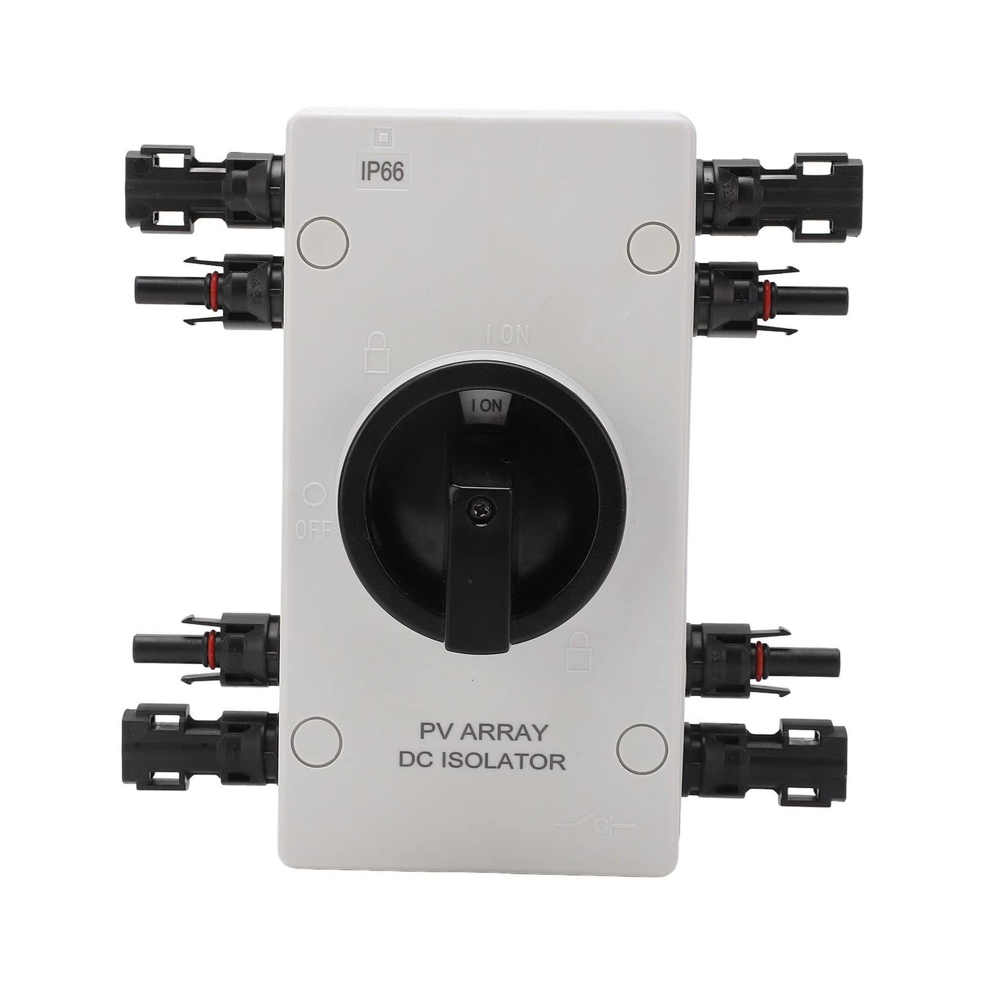 Introducing the ultimate Solar Disconnect Switch, engineered for optimal performance and safety in solar energy systems. Crafted from high-quality PC material, this switch boasts an impressive waterproof rating of IP66, ensuring reliable operation even in the harshest weather conditions. With a flame resistance grade of UL94V-0, it guarantees durability and safety, making it an essential component for any solar installation.