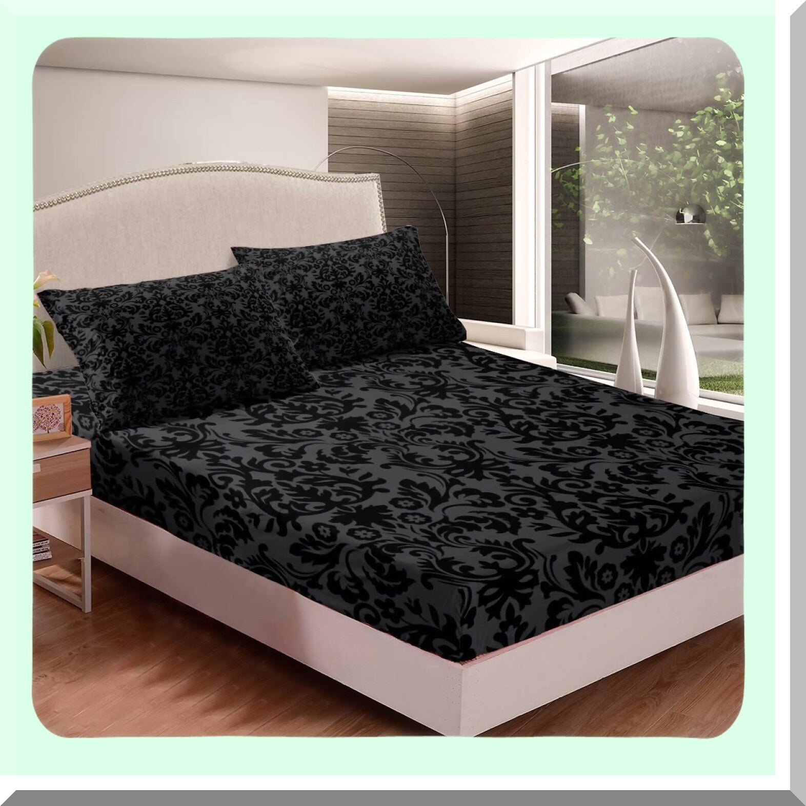 Victorian Gothic Black Damask Bedding Set - Twin Size Vintage Floral Sheet Set with Exotic Fitted Sheet, Flat Sheet, and 1 Pillow Case for Adult Bedroom Decor