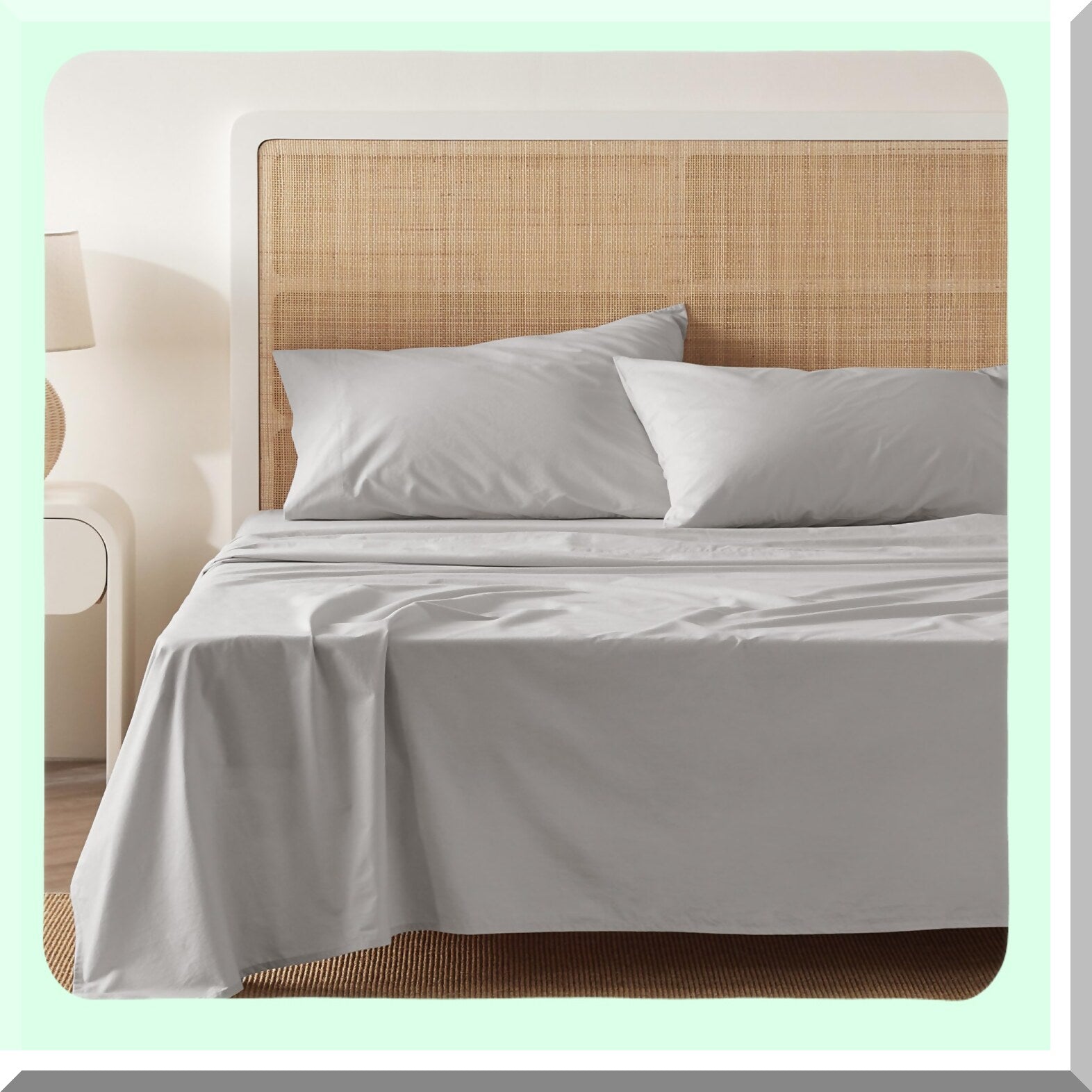 CoolCotton Percale Queen Sheet Set - Breathable Grey Bedding with Deep Pocket, Soft Cooling Sheets for Queen Size Bed, 100% Cotton 4 Piece Set