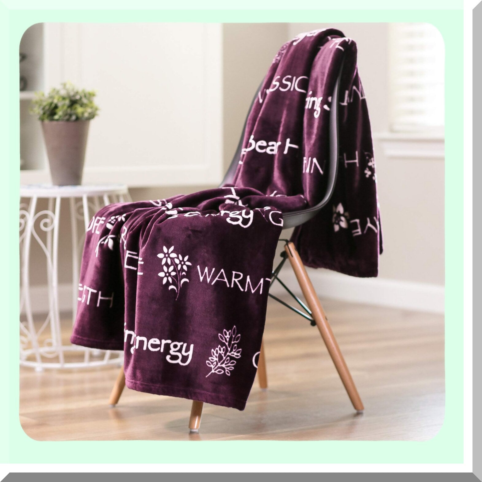 Indulge in luxury with this ultra-soft microfiber throw blanket, featuring a plush velvet front and fluffy sherpa back for ultimate comfort. Perfect for adding a touch of elegance to your living room or bedroom, this blanket is not only stylish but also incredibly cozy. The inspiring words woven into the fabric will uplift your spirits and brighten your day. Whether you're snuggled up on the couch, enjoying a movie night with loved ones, or need a quick warmth boost in a chilly office, this blanket is the perfect solution. When not in use, simply drape it over your furniture for a chic decorative accent. Stay warm, stylish, and inspired with this versatile and luxurious throw blanket.