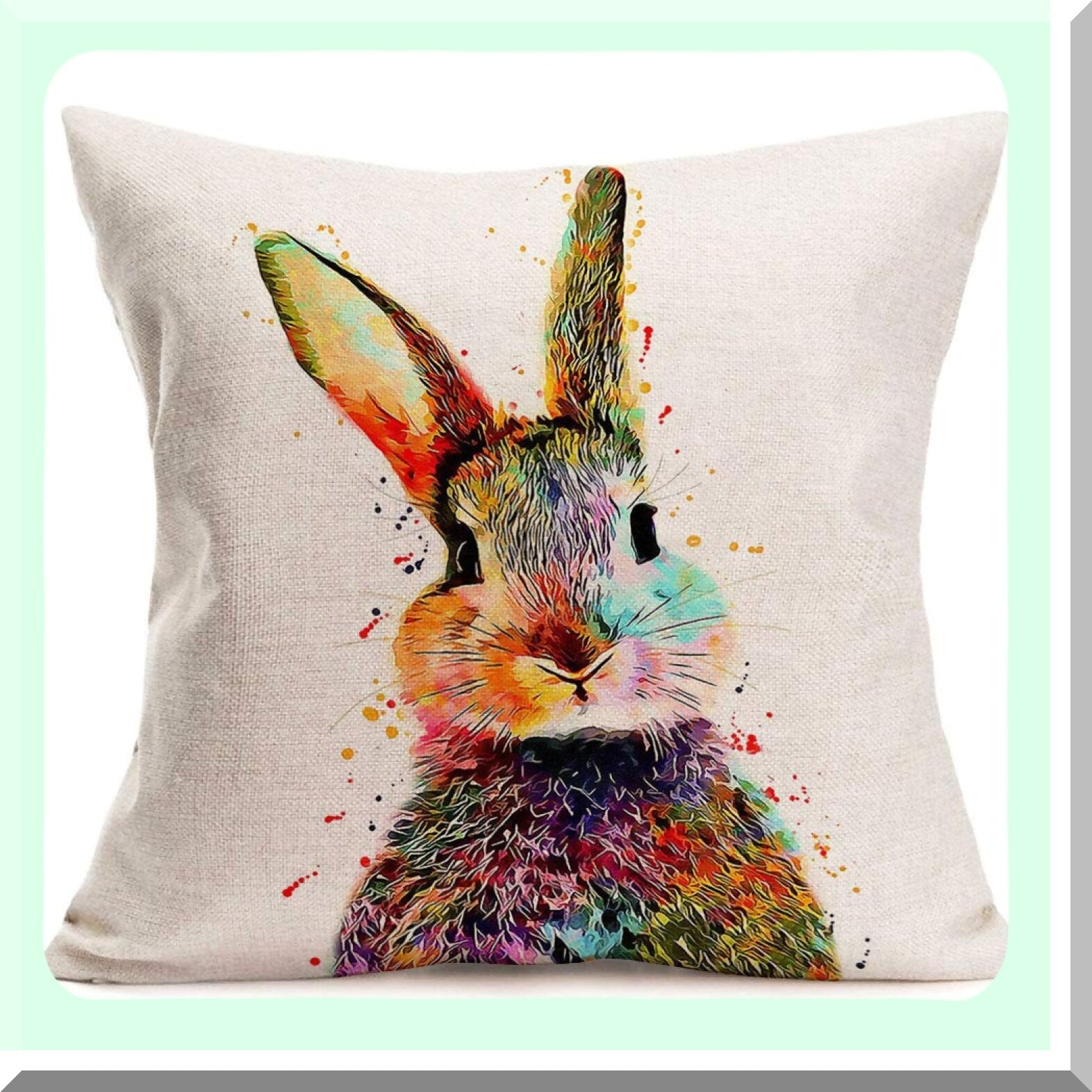 Animal Charm Cotton Linen Pillow Cover Set - Colorful Rabbit Design - Home Decor Cushion Cases for Sofa Couch - 18 x 18 Inch - Lovely Animals Theme