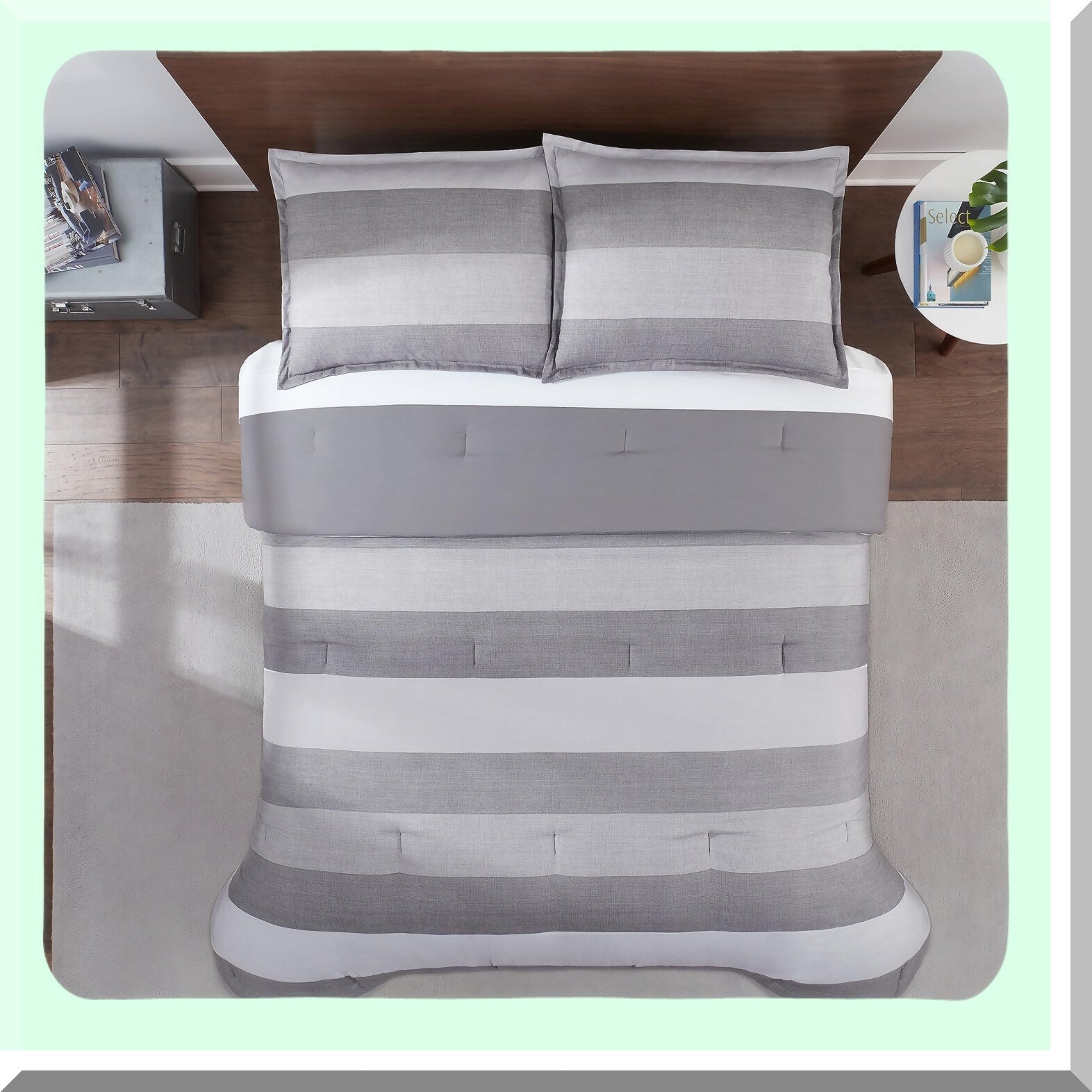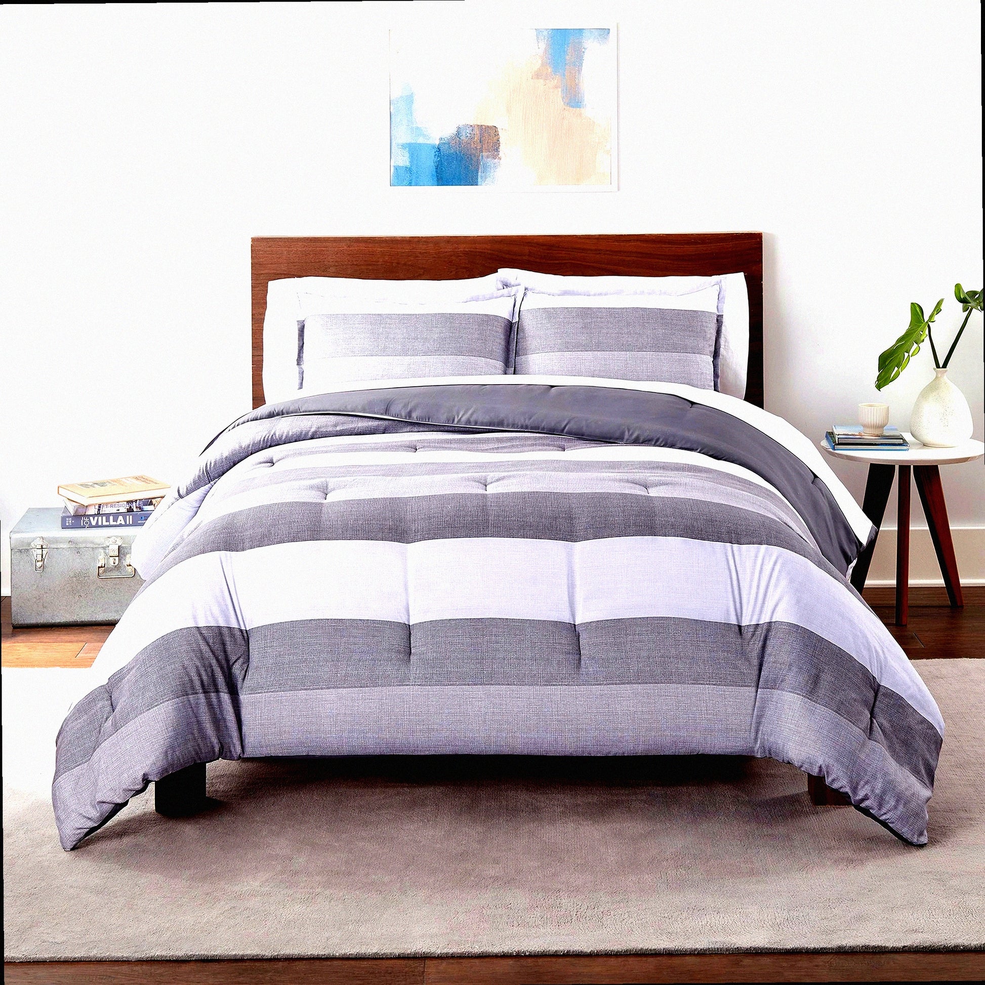 Introducing our Full/Queen size 3-piece comforter set, designed to revolutionize your bedding experience. Our Simply Clean Comforter Set is not just hypoallergenic, but also infused with innovative technology to prevent odor buildup, ensuring a fresh and long-lasting bed. The modern striped design adds a touch of style to any room, making it versatile for everyday use. Complete your bedding collection with our matching Simply Clean products, from sheets to duvets, for a cohesive look. With a stain release treatment, caring for this set is a breeze - simply toss it in the washing machine with like colors. Upgrade your bedding with our convenient and stylish comforter set today!