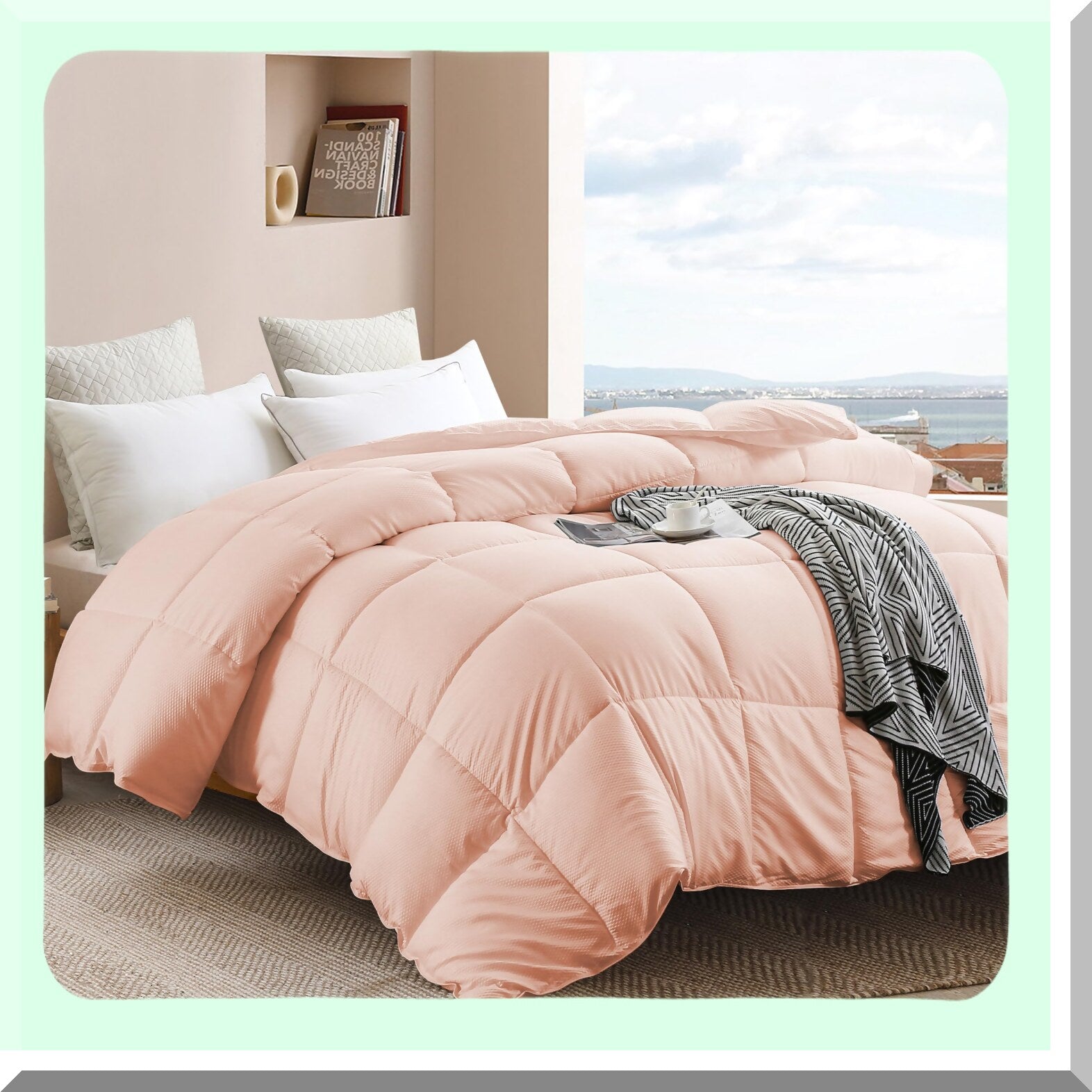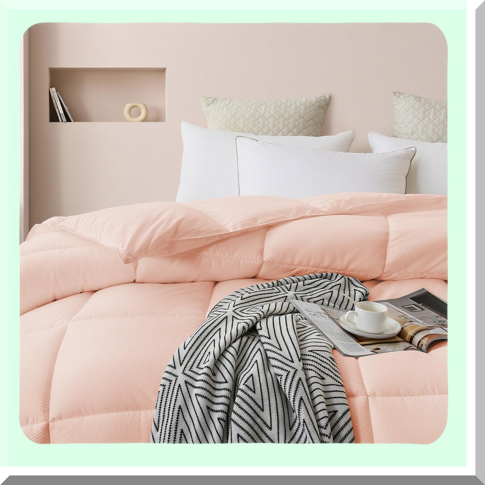 Bubble Pink All Season Cooling Down Alternative Comforter - Ultra Soft Quilted Duvet Insert with Corner Tabs - Hotel Collection Bedding for a Comfortable Sleep Experience - Oversized and Machine Washable