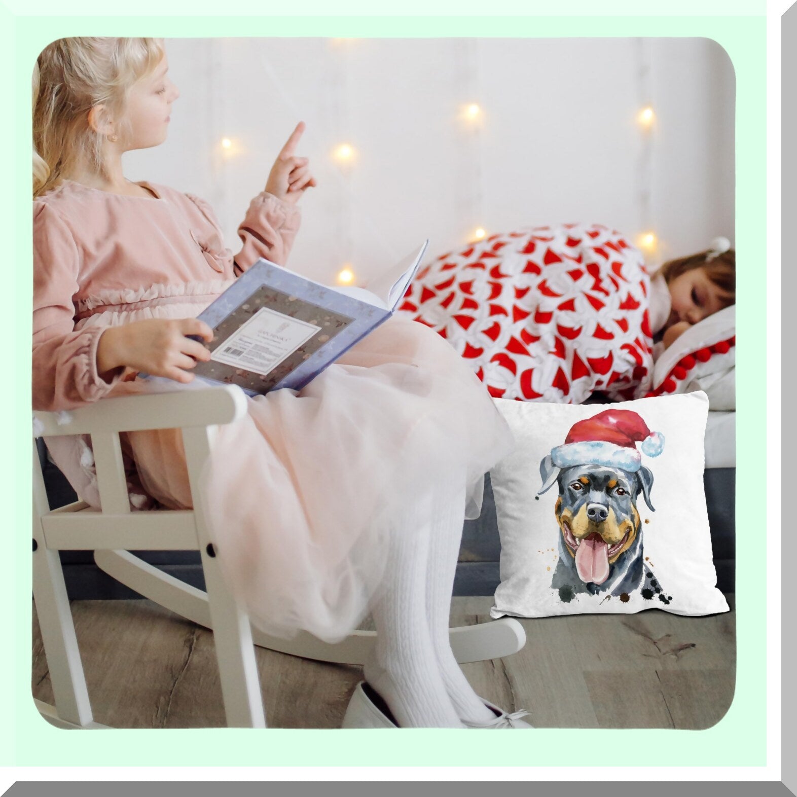 The Rottweiler Throw Pillow Cover, measuring 18x18 inches, offers practical benefits for dog lovers and Rottweiler enthusiasts. It serves as a decorative piece suitable for various rooms, including the home, bedroom, living room, and girls' rooms. The cover enhances the aesthetic appeal of any space with its dog-themed design, making it a perfect addition for Rottweiler moms and girls who adore this breed. Its size and design make it versatile for different settings, providing both comfort and a personalized touch to home decor.