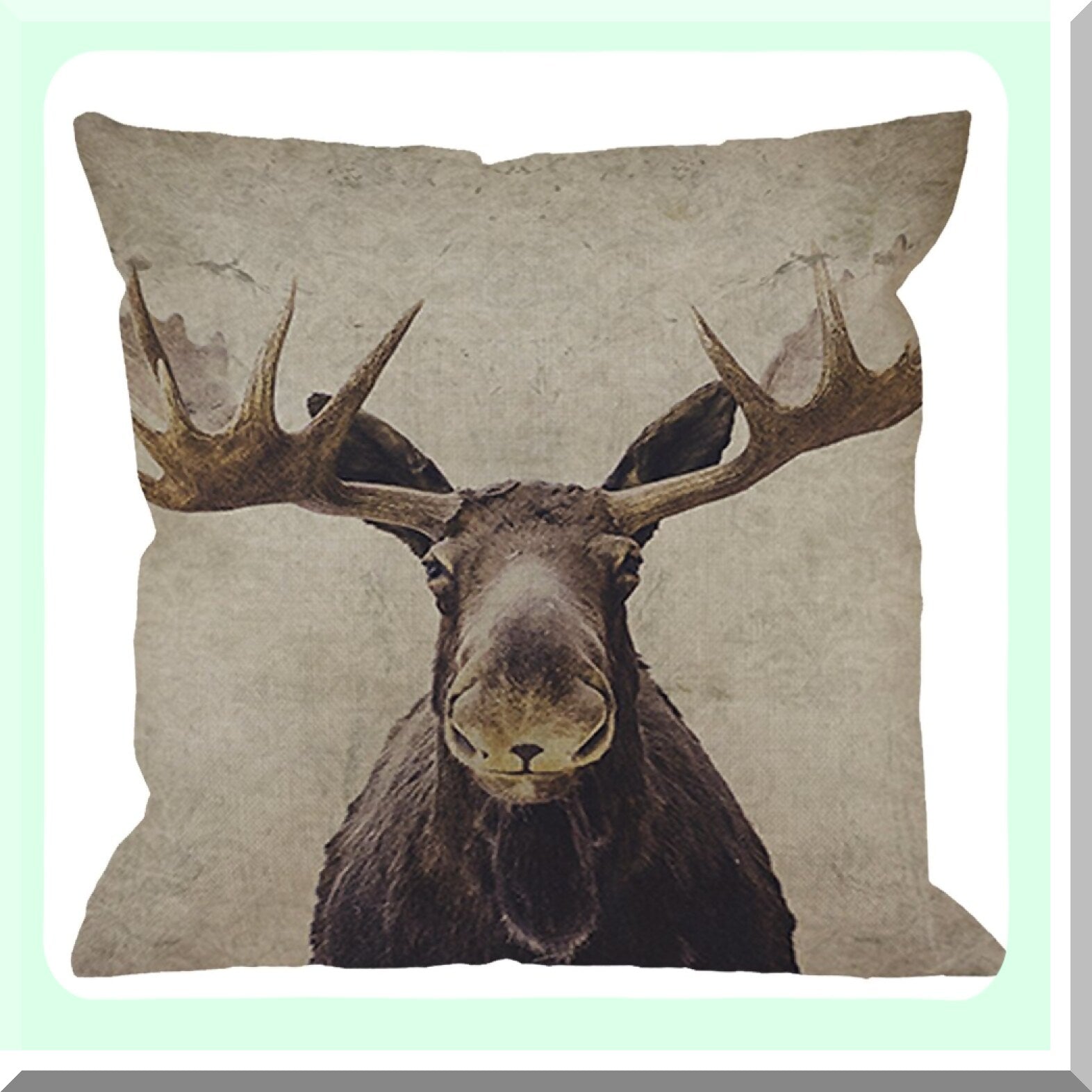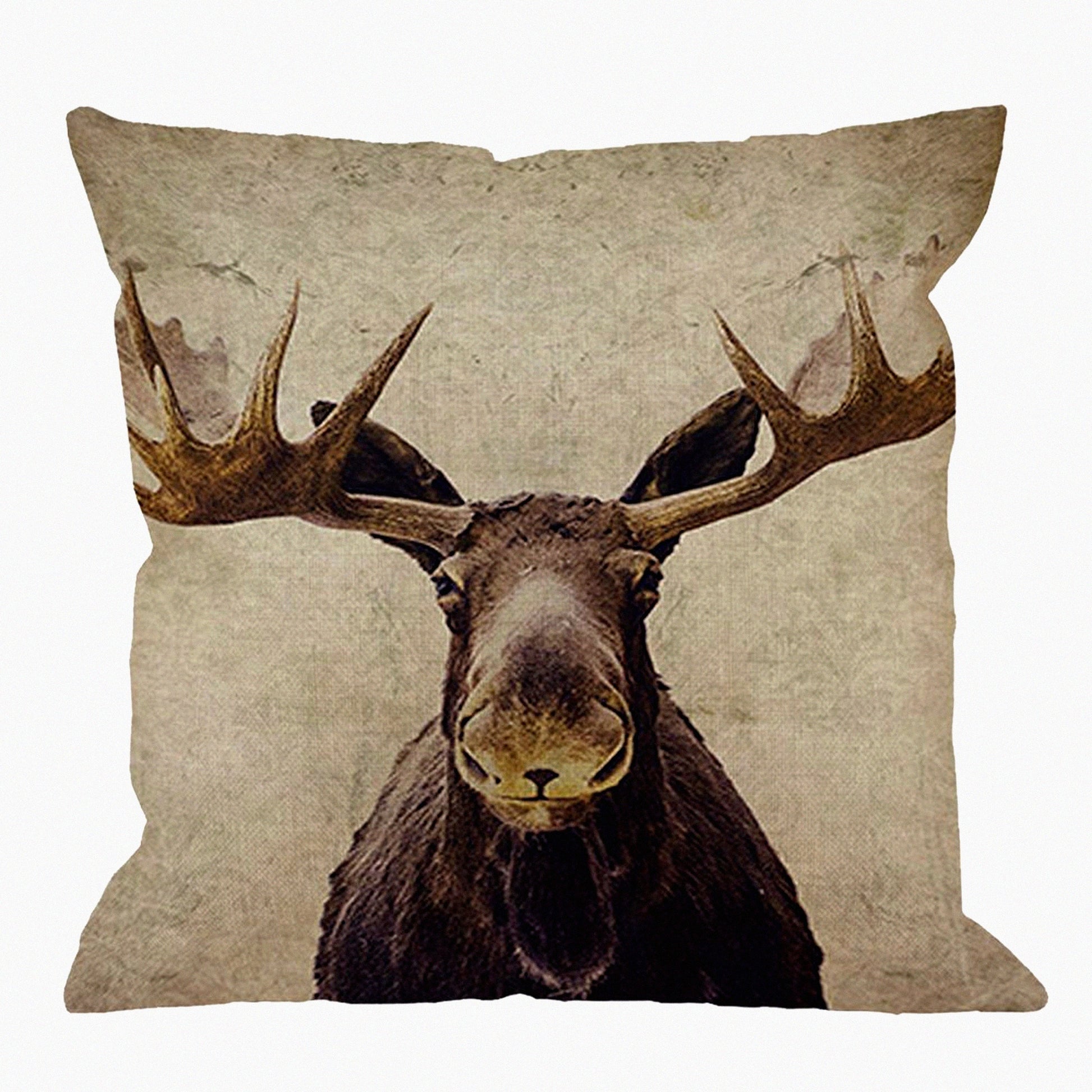 Rustic Moose Decorative Pillow Cover - Cotton Linen Square Cushion Case for Home Sofa Armchair Bedroom Living Room - 18 x 18 Inch - Men Women Gift