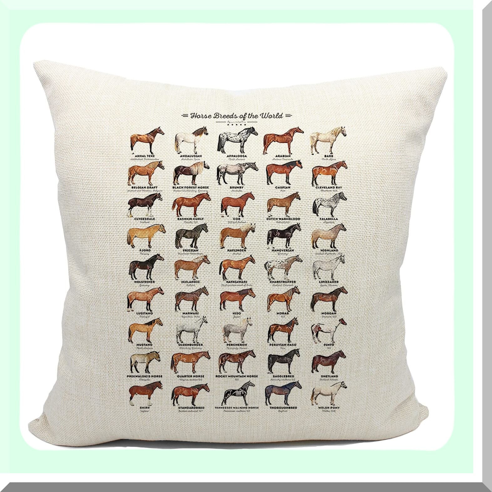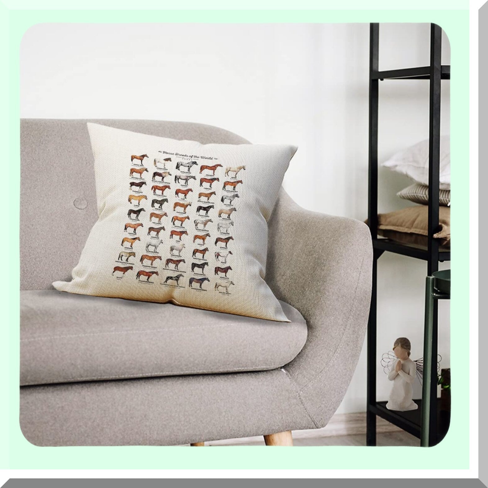 Horse Haven Linen Pillow Cover Set - 18x18 Decorative Cushion for Girls Room, Equestrian Theme Bedroom Decor, Horse Lover Gift, Soft and Cozy