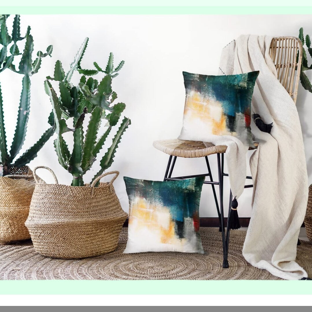 Colorful Canvas Shading Pillow Covers - Acrylic Painting Mix Media Decor - Red Orange Blue Turquoise Contemporary Home Decor - 20x20 Inches Square Pillowcase