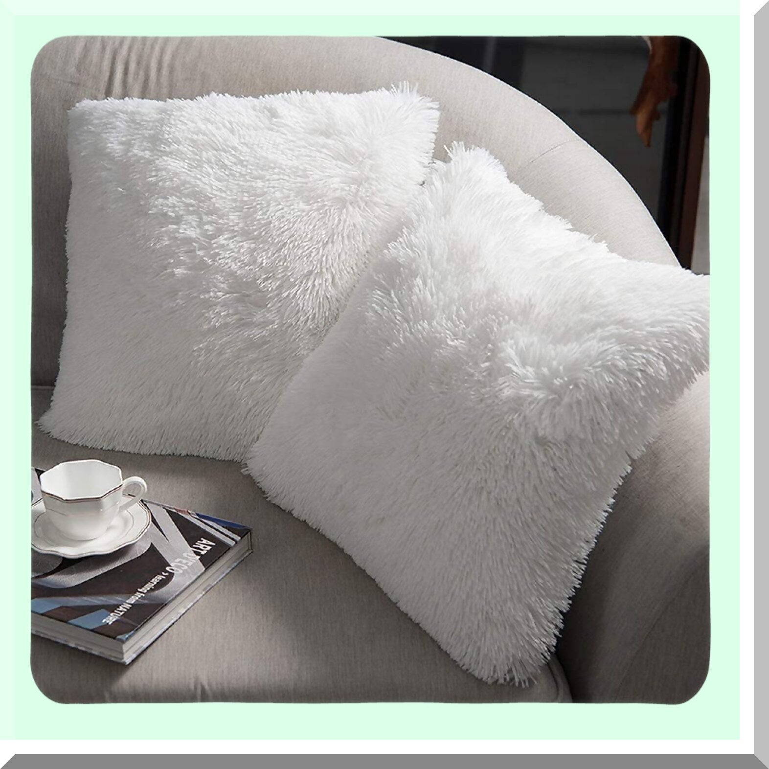 Plush Comfort Fleece Pillowcase Set - Soft Decorative Throw Pillow Covers, 18x18 Inch, White, Luxury Cushion Cover, Pack of 2
