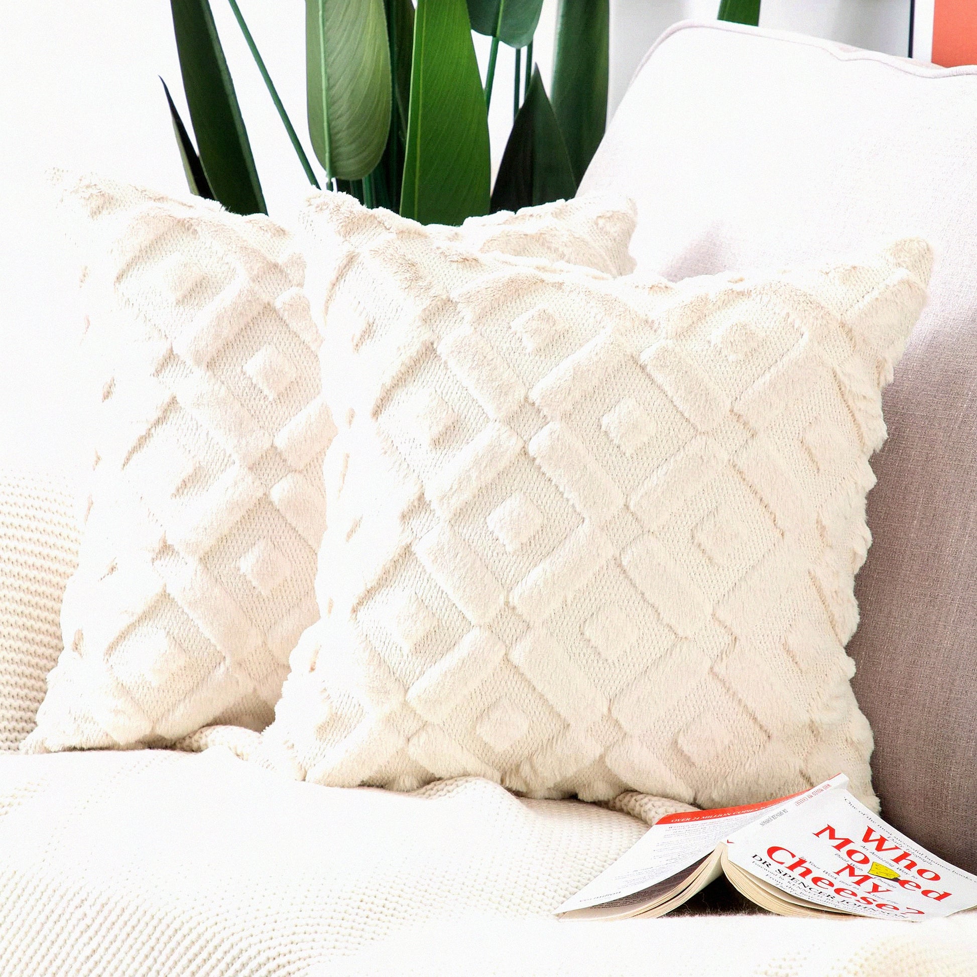 SuperPlush Cozy Wool Throw Pillow Covers - Set of 2 Beige 16x16 Inch Square Decorative Velvet Cushion Cover for Sofa Bedroom Livingroom - Soft & Stylish Pillow Shell