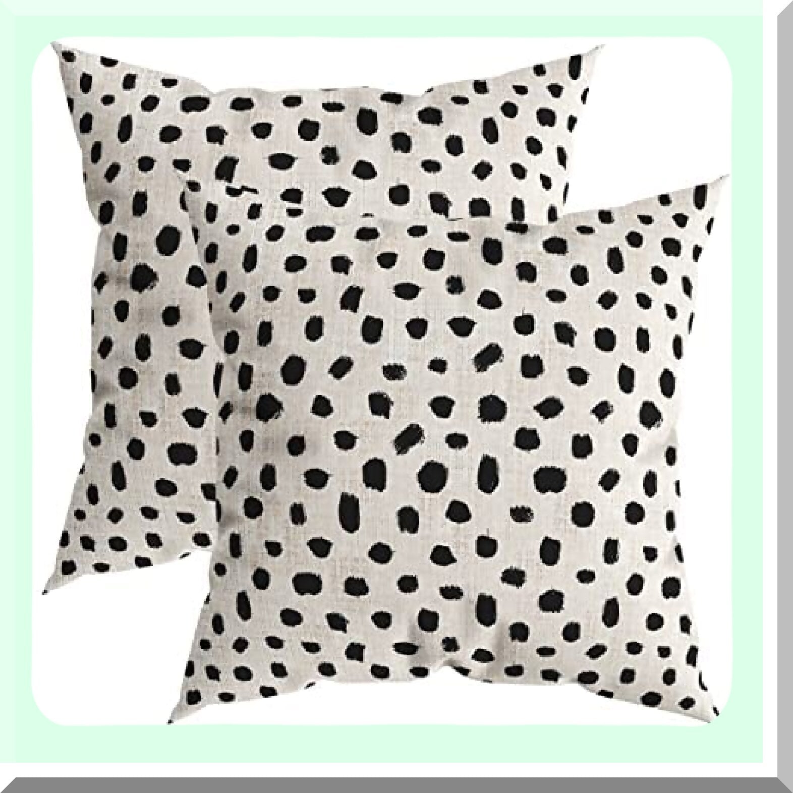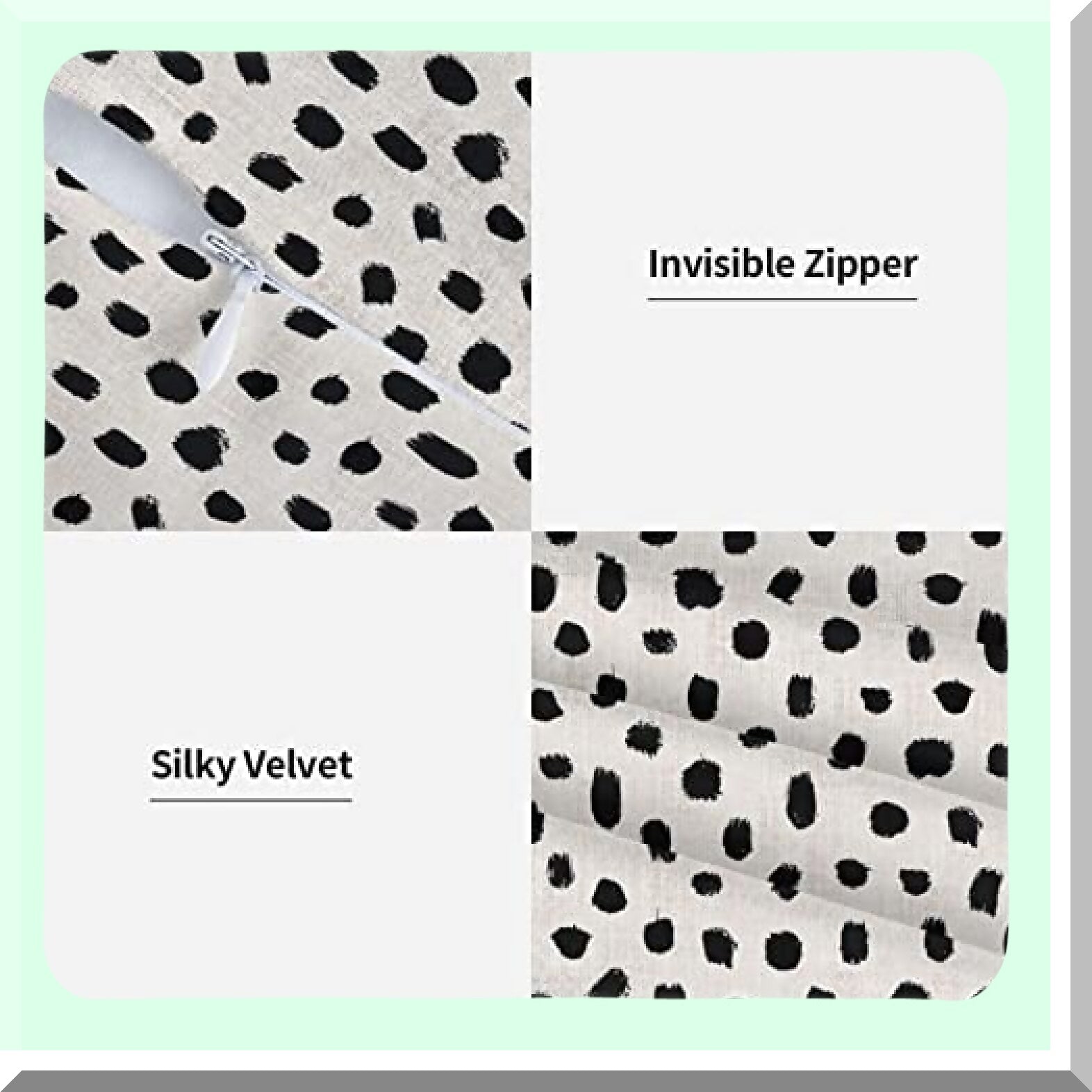 Rustic Boho Farmhouse Pillow Covers - Set of 2 Decorative Polka Dot Cushion Covers 16x16 - Black Cream Linen Throw Pillowcase for Home Car Bed - Outdoor Square Decor