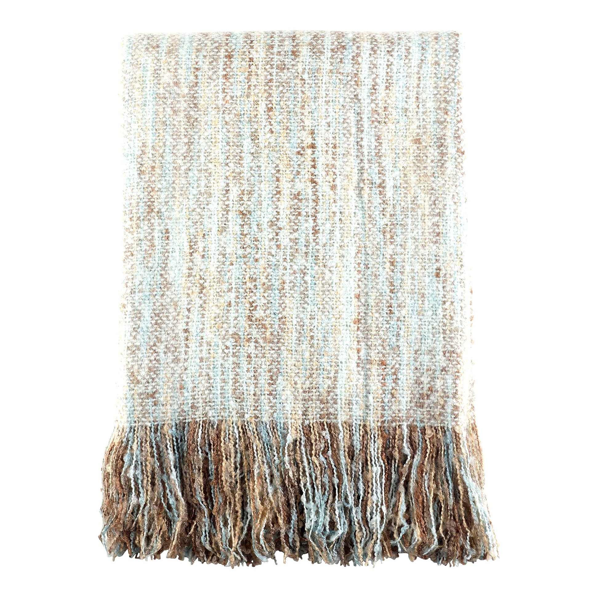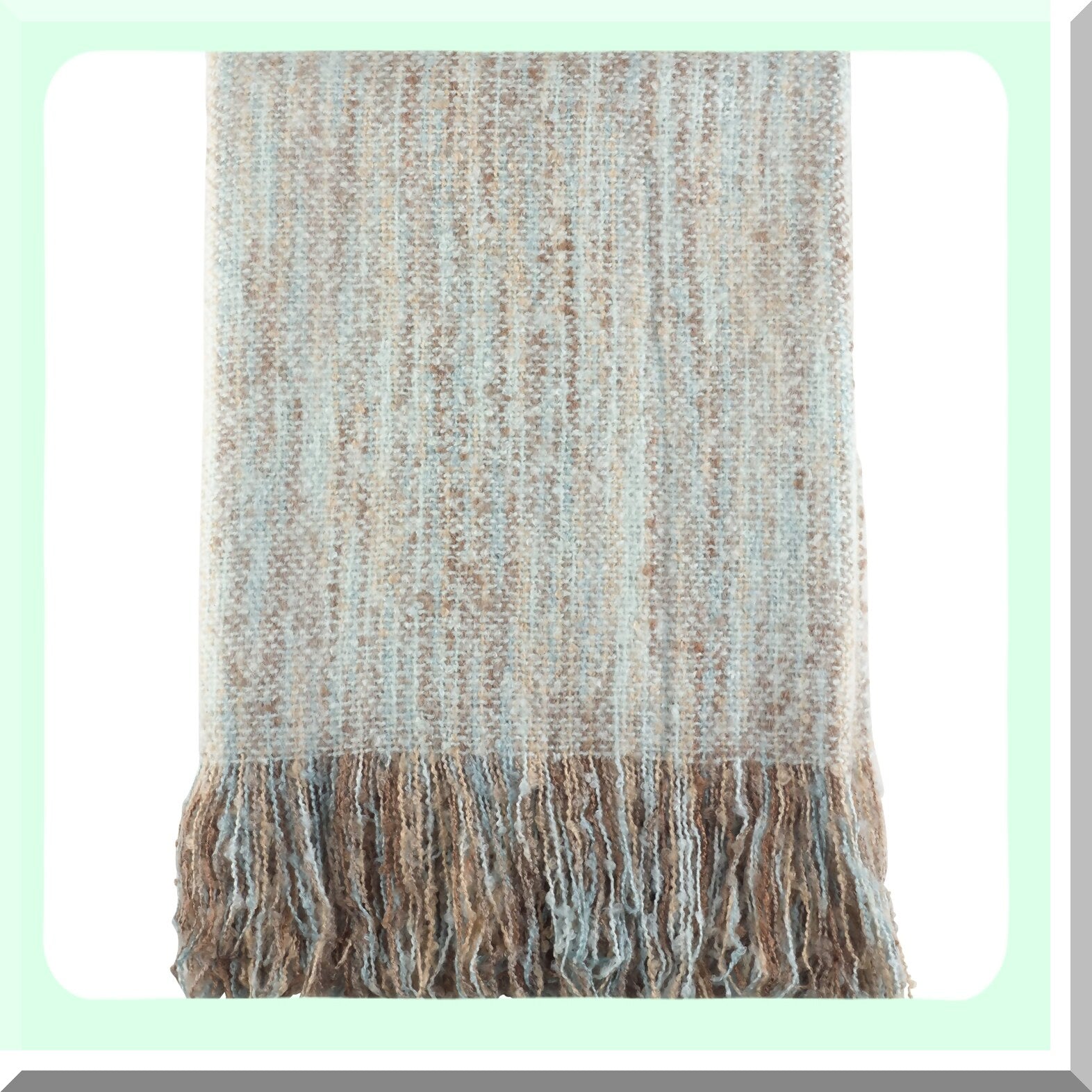 Aqua Breeze Mohair Fringe Throw Blanket - Lightweight & Cozy 50"x60"